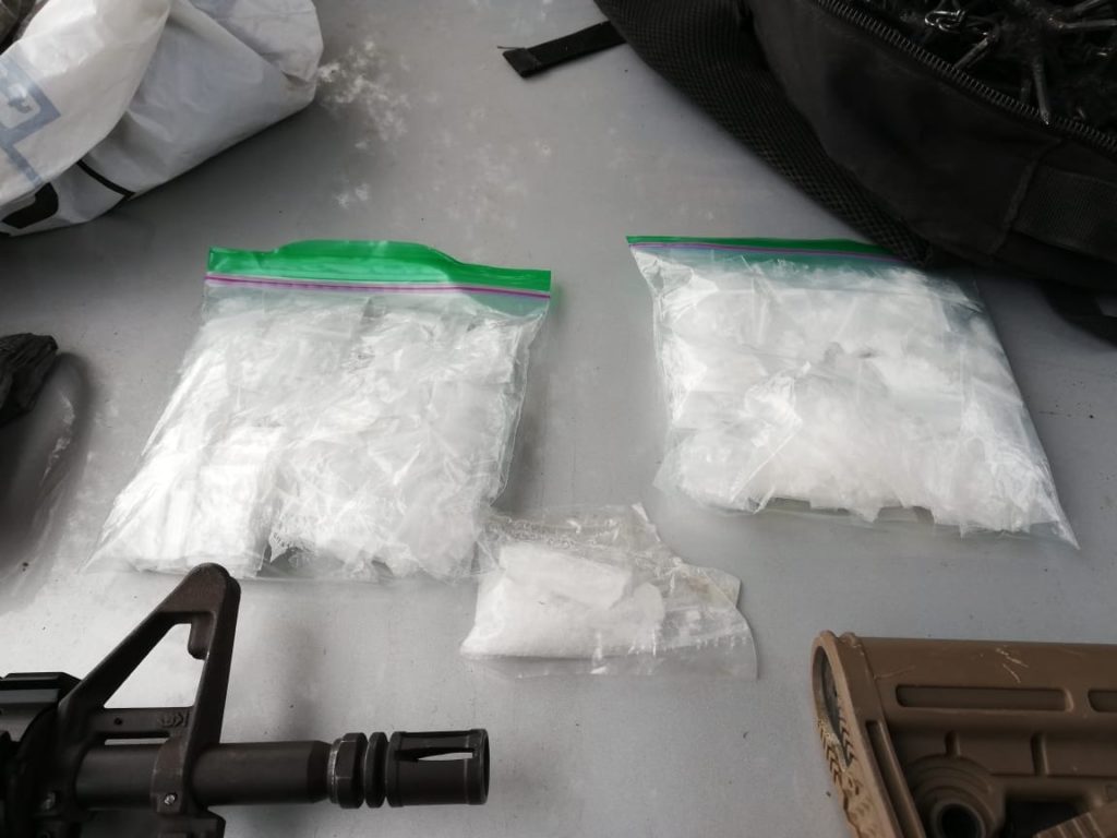 De igual modo, aseguraron durante la detención: 139 bolsas con hierba similar a la marihuana, 397 bolsas de sustancia sólida con características de la droga cristal, un tabique de aproximadamente un kilo de marihuana.
