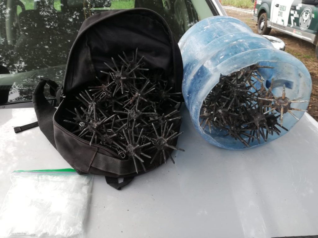 Al ser inspeccionado el vehículo, los efectivos encontraron dos armas largas: un fusil carabina M4, calibre 5.56mm con un cargador, 25 cartuchos, un fusil carabina, M4, calibre 5.56, con un cargador y 27 cartuchos; además de ponchallantas.