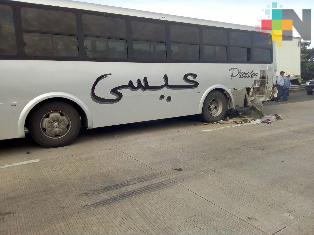Un segundo vehículo fue el autobús Dina color blanco, razón social de la línea Plateados de Córdoba, con placas 502HXS SPF, del cual resultaron ocho pasajeros lesionados que no ameritaron traslado a algún hospital.