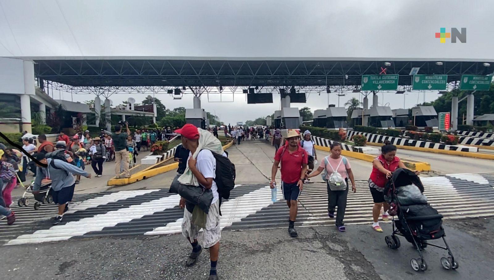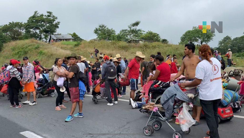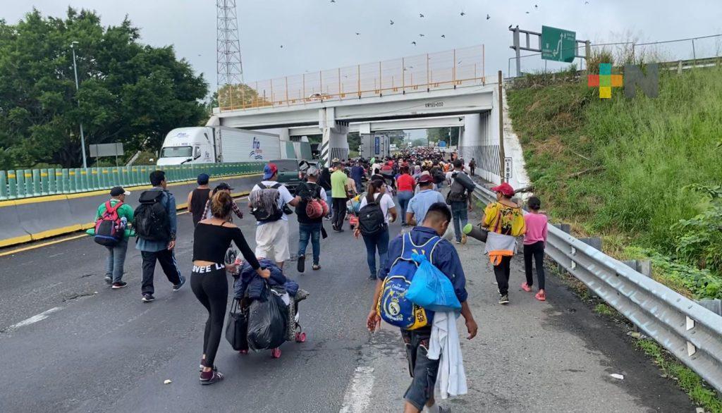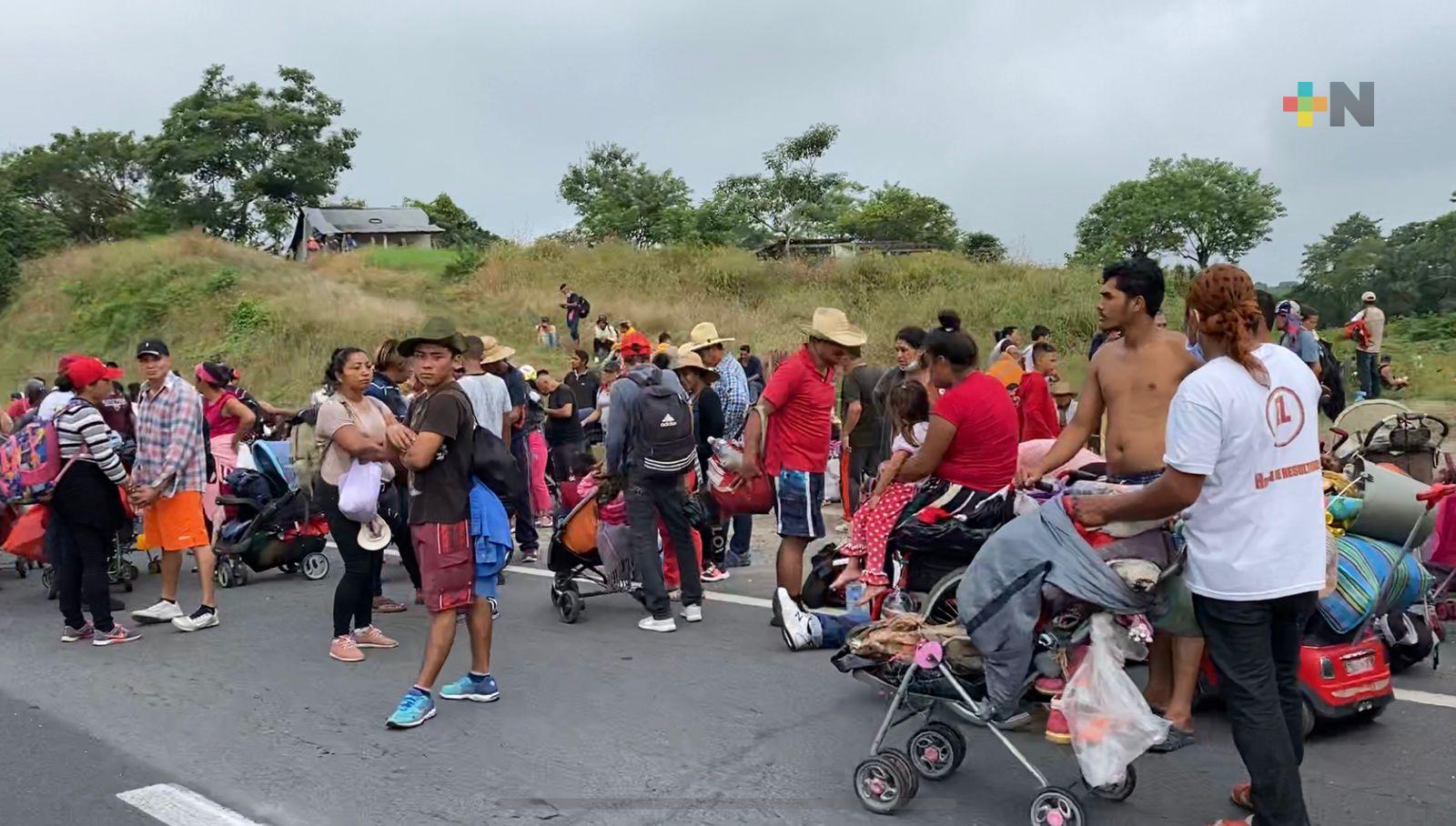 Caravana migrante sigue en movimiento, llega a la autopista Acayucan-La Tinaja