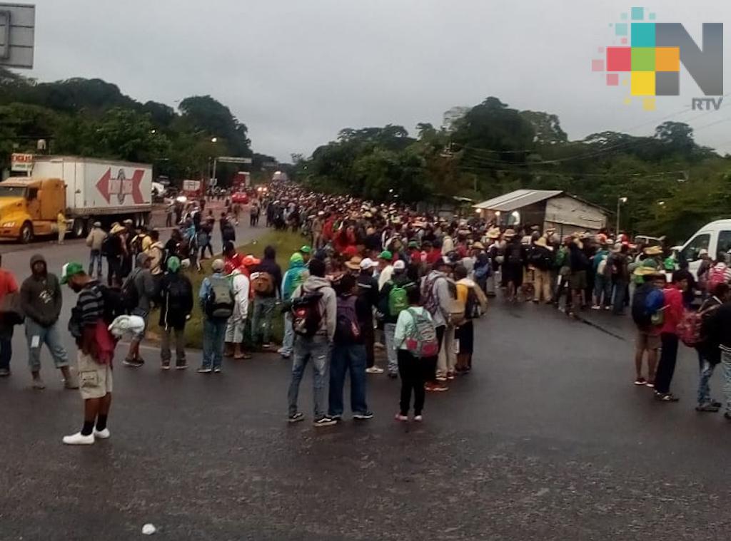 Caravana migrante sale de Sayula de Alemán rumbo a Isla
