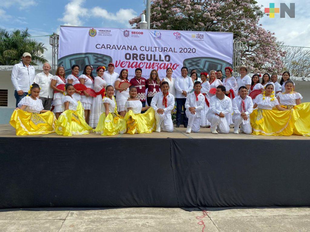 Tres Valles, Ver.- Llegó la Caravana Cultural 2020 Orgullo Veracruzano a Los Naranjos, congregación del municipio de Tres Valles, en apego al lineamiento de atender no solo a cabeceras municipales, sino también a las congregaciones y localidades, para acercar diversos servicios a las personas más desprotegidas.