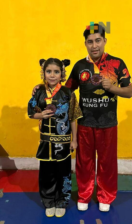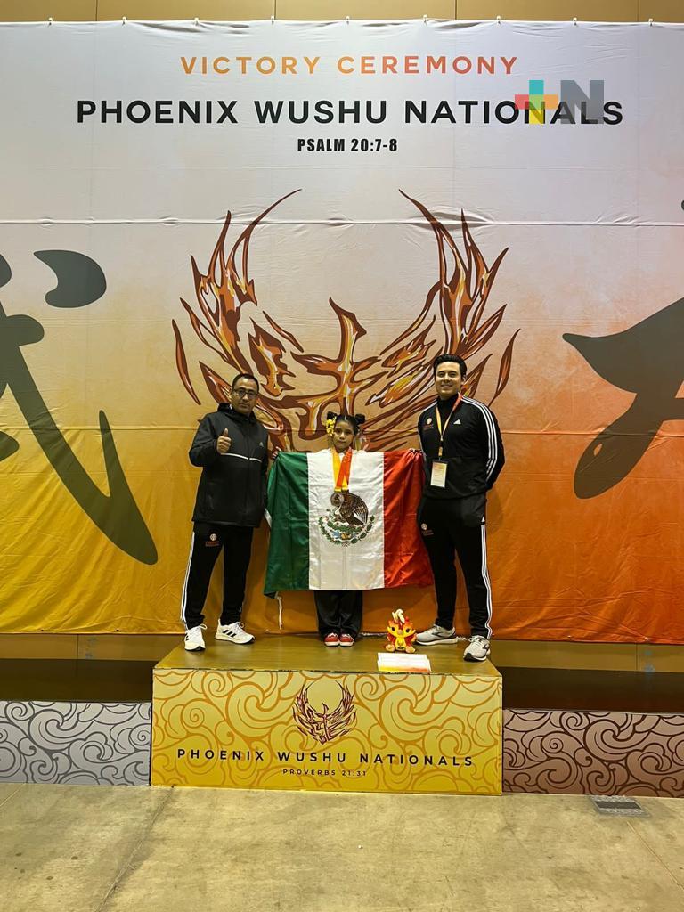 Coatzacoalcos, Ver.- La artemarcialista Carely Posadas de Acayucan, se adjudicó medallas de bronce en el «Phoenix Wushu Nationals», evento internacional de wushu – kung fu con sede en Phoenix, Arizona, la femenil de la categoría principiantes y que cuenta con 10 años de edad destacó, logrando el tercer lugar en la modalidad de taolu manos libres e implemento corto, informó el presidente de la Asociación de Artes Marciales Chinas del Estado de Veracruz, Juan Carlos Escandón.