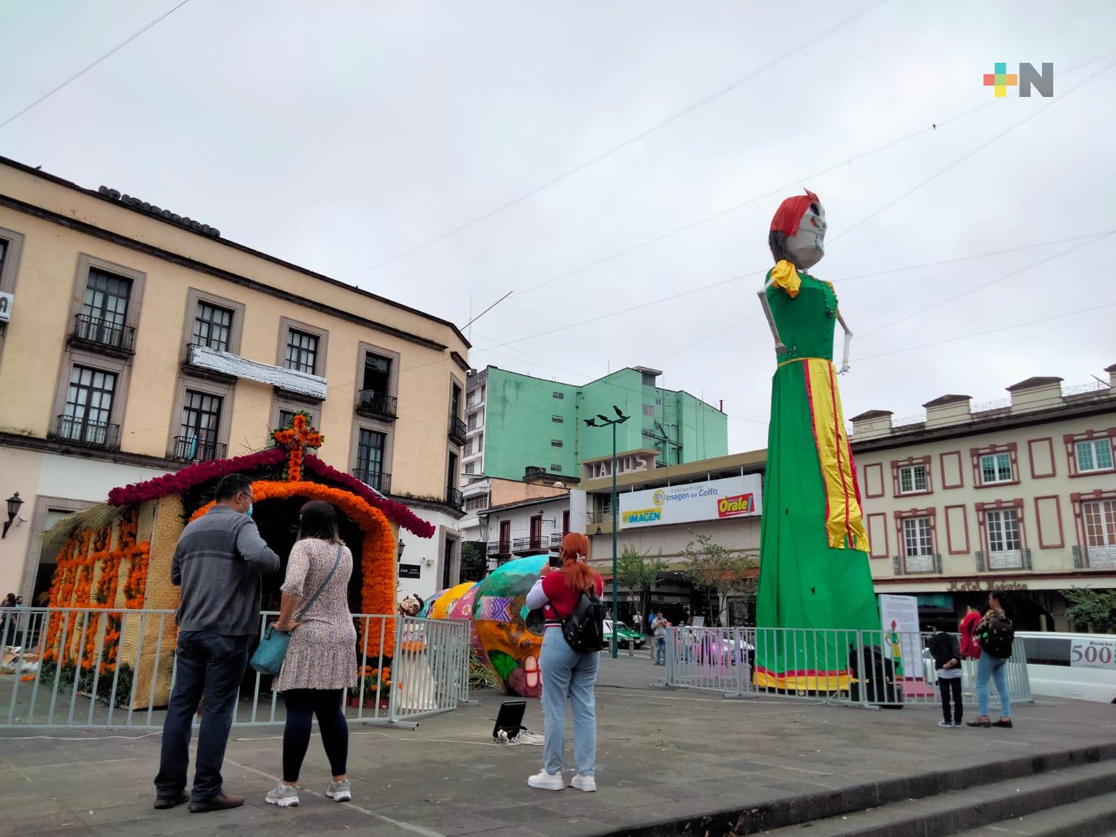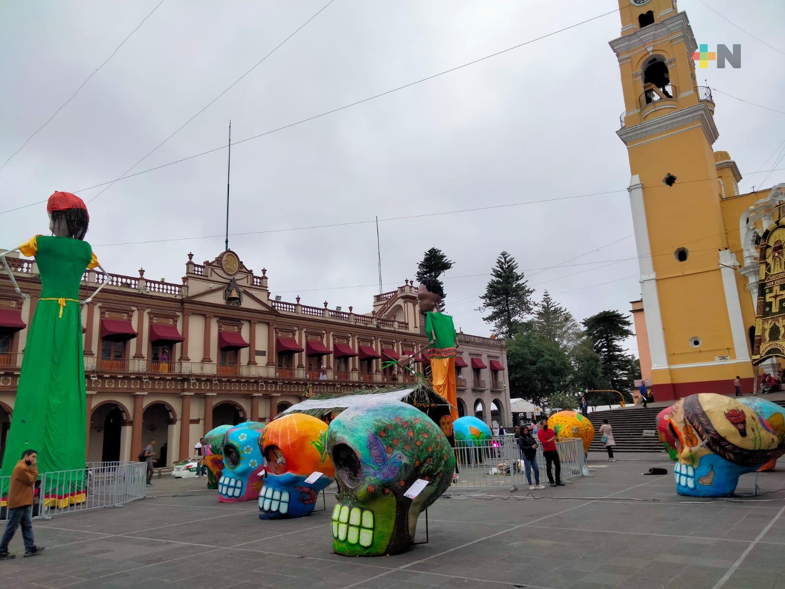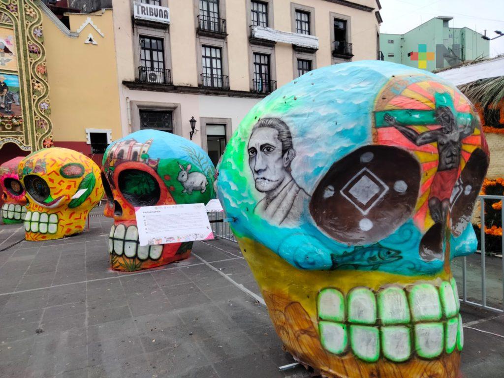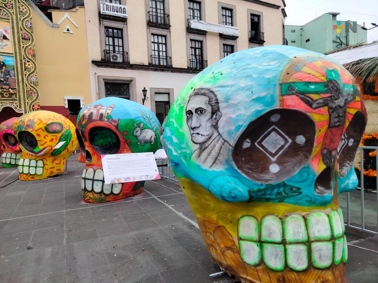 Catrinas monumentales en plaza Lerdo son un atractivo en el centro de Xalapa