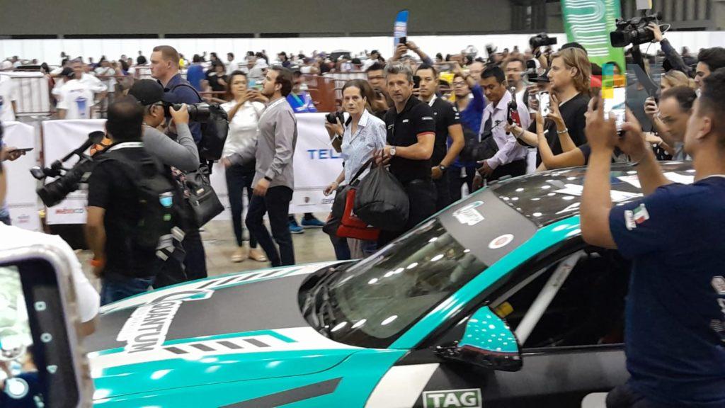 El estadounidense de 57 años también posó junto al vehículo Porsche que conducirá durante la Carrera Panamericana 2023 y después de unos minutos se retiró del World Trade Center para continuar con sus actividades privadas.
