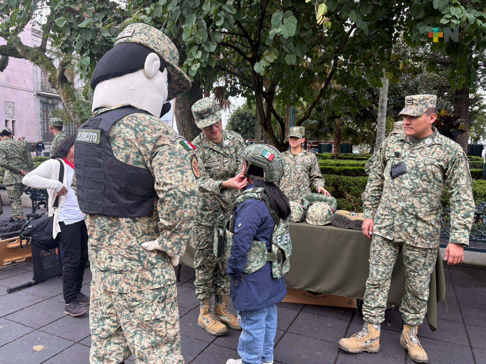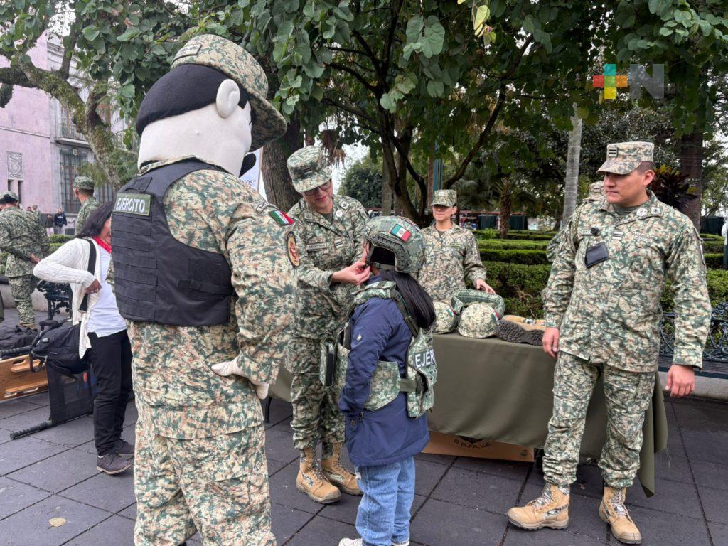 Xalapa, Ver.- Como parte de las actividades conmemorativas por el mes del Ejército y la Fuerza Aérea mexicanos, en el parque Benito Juárez se llevó a cabo una exposición militar con el fin de acercar a la ciudadanía el trabajo de las fuerzas armadas.