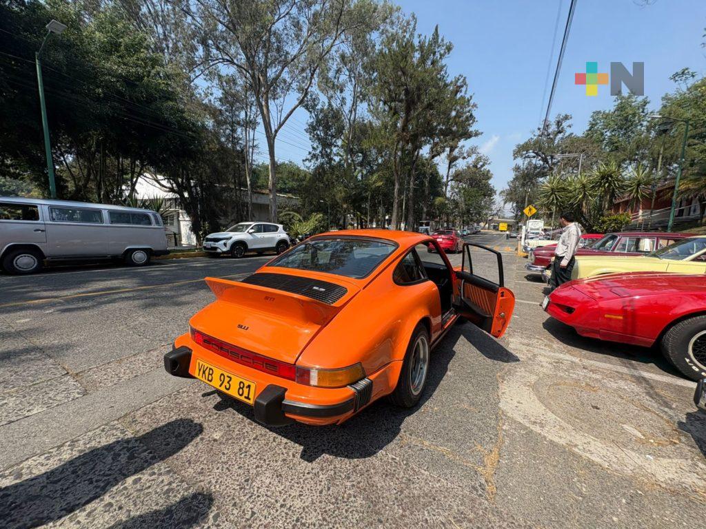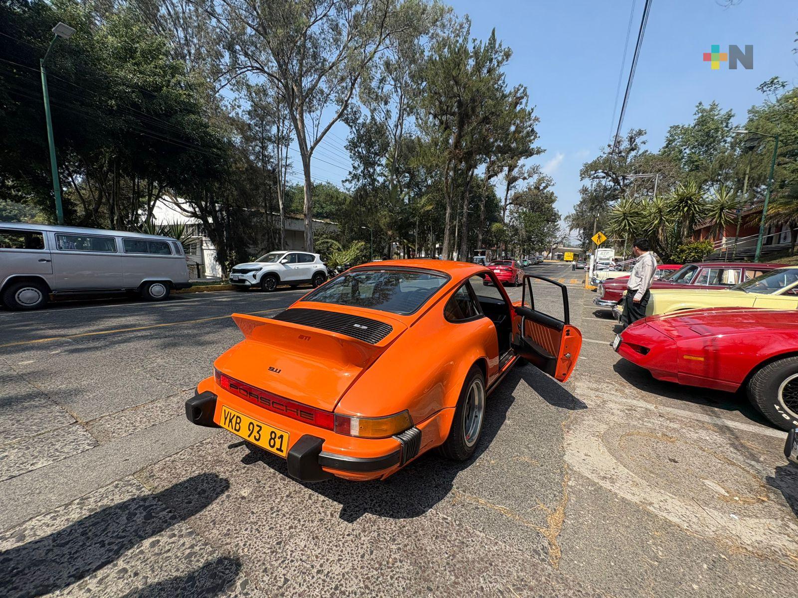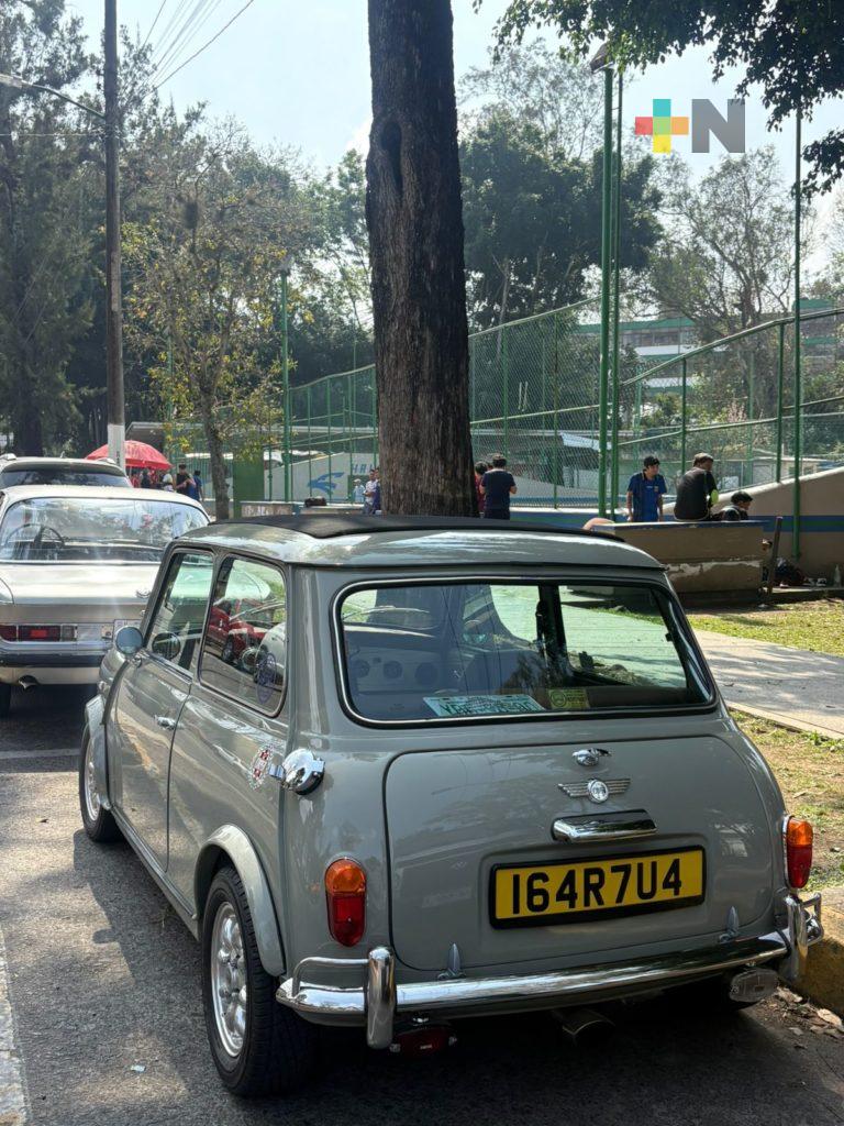 Al menos 40 modelos de automóviles clásicos fueron expuestos en la zona universitaria para que la ciudadanía xalapeña pudiera observarlos y tomarse fotografías con ellos.