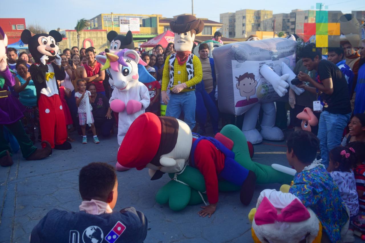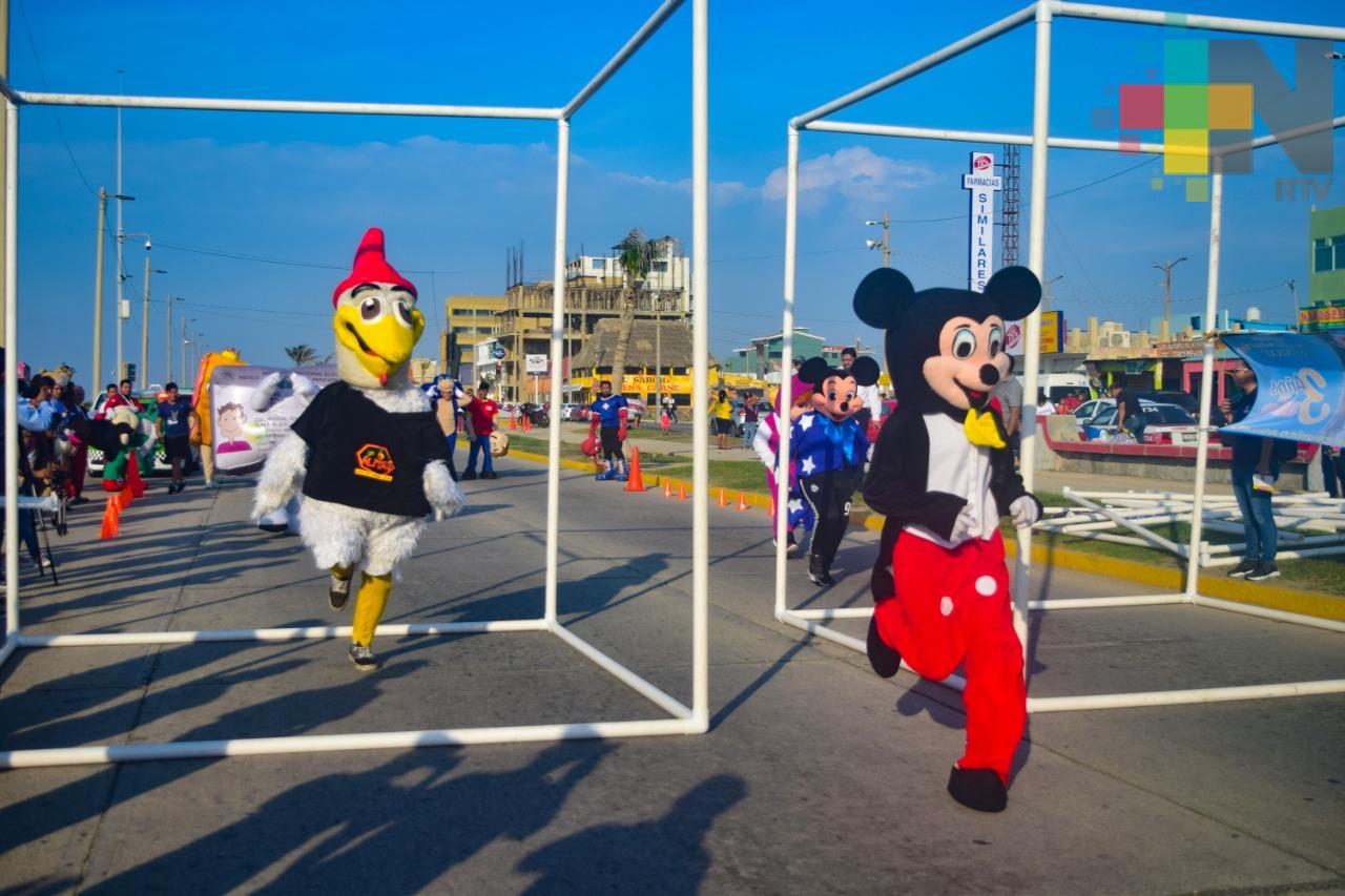 Coatzacoalcos, Ver.- La Hormiga Atómica, Peperoni, Credencialín, Hojaldrín, Mickey Mouse, Daisy, Robin, Raven, Woody, entre otros personajes, se hicieron presentes en uno de los eventos deportivos más esperados en Coatzacoalcos, la carrera de botargas.
