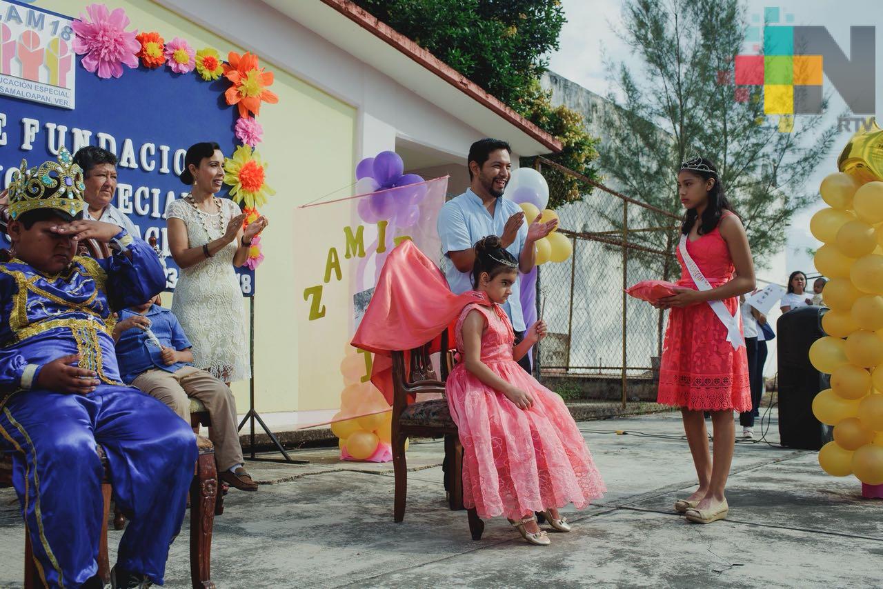 Cosamaloapan, Ver.- El Centro de Atención Múltiple (CAM) número 18, ubicado en el municipio de Cosamaloapan, celebró su aniversario número 39 donde alumnos y docentes festejaron con la elección y coronación de su corte real, siendo los pequeños Antonio Reyes y Paulette Zamora los reyes de educación especial 2018.