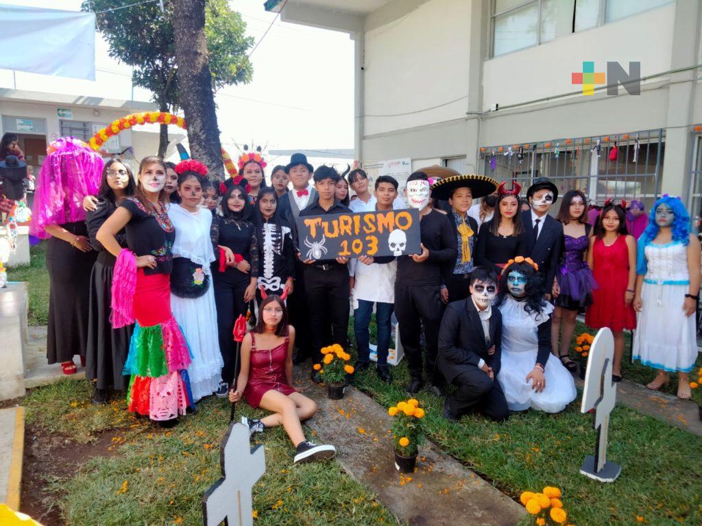 Además del Xantolo, los altares de muerto adornados con flor de cempasúchil, las ofrendas y las tumbas, el maquillaje y los disfraces fueron parte de esta fiesta en la que participaron alumnos y docentes de este subsistema de bachillerato.