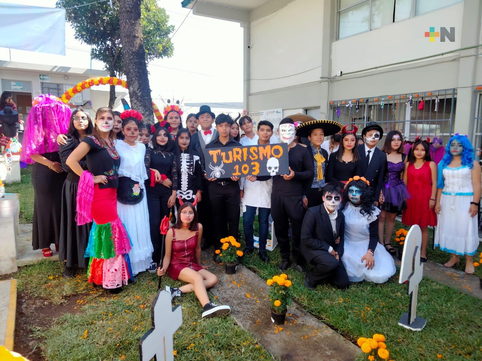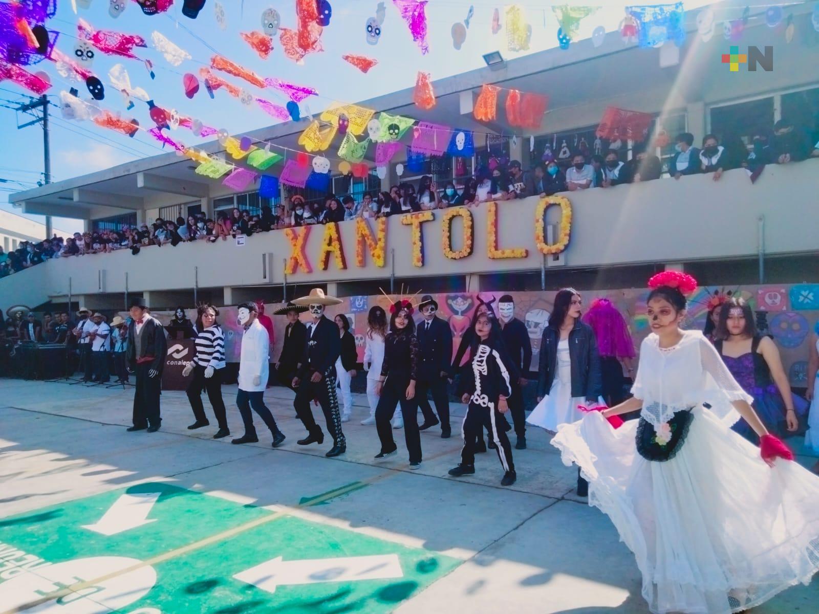 Además del Xantolo, los altares de muerto adornados con flor de cempasúchil, las ofrendas y las tumbas, el maquillaje y los disfraces fueron parte de esta fiesta en la que participaron alumnos y docentes de este subsistema de bachillerato.