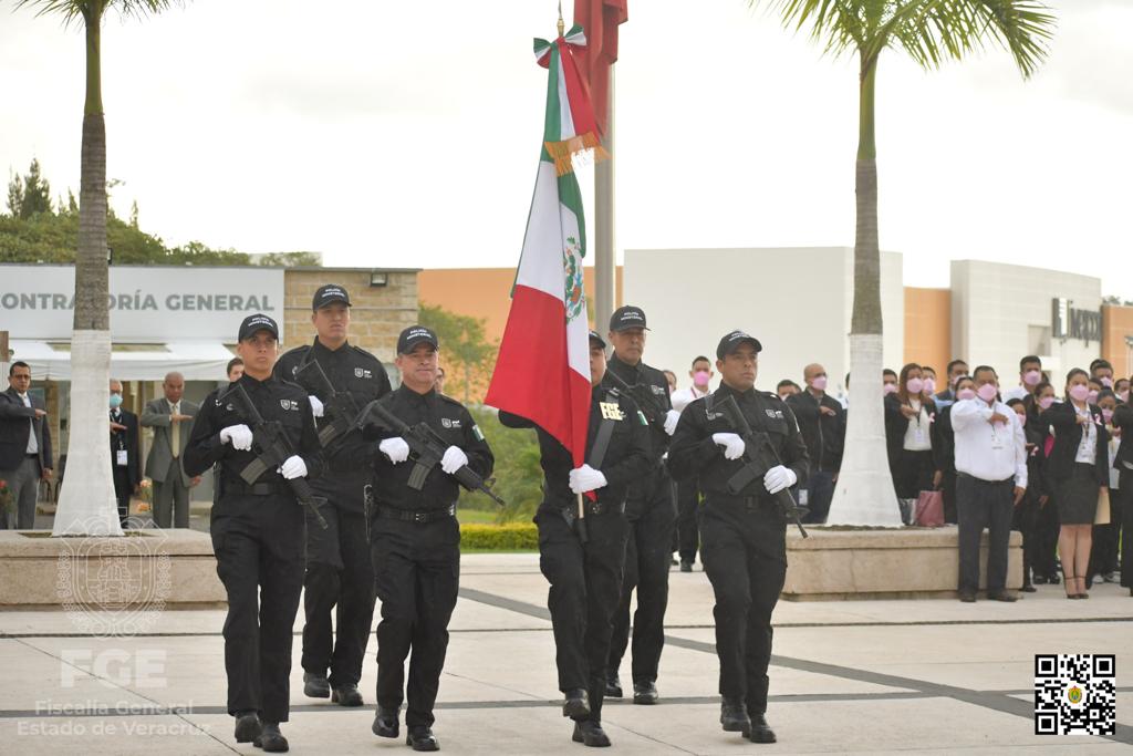 La Fiscal General del Estado, Verónica Hernández Giadáns, encabezó en oficinas centrales, la ceremonia de honores a la bandera, que correspondió organizar a las y los servidores públicos que integran la Dirección del Centro de Información e Infraestructura Tecnológica, quienes después del abanderamiento de la escolta conformada por elementos de la policía ministerial, pronunciaron el juramento a la bandera y compartieron las efemérides de la semana.