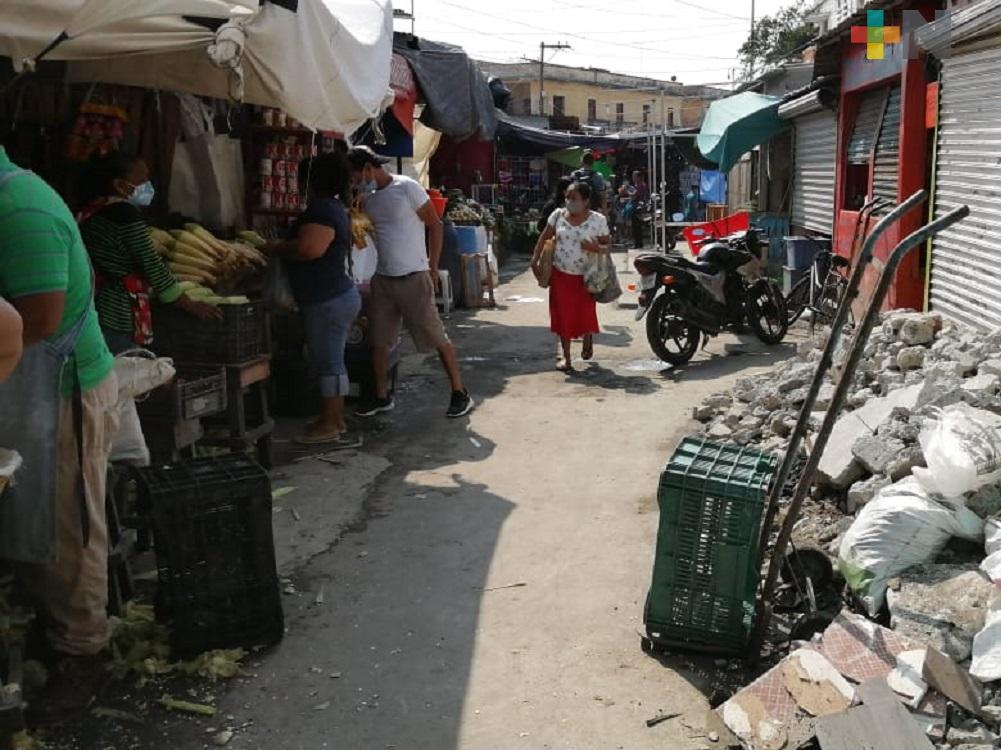 Colocando changarros, locatarios convirtieron calle de Veracruz en paso peatonal