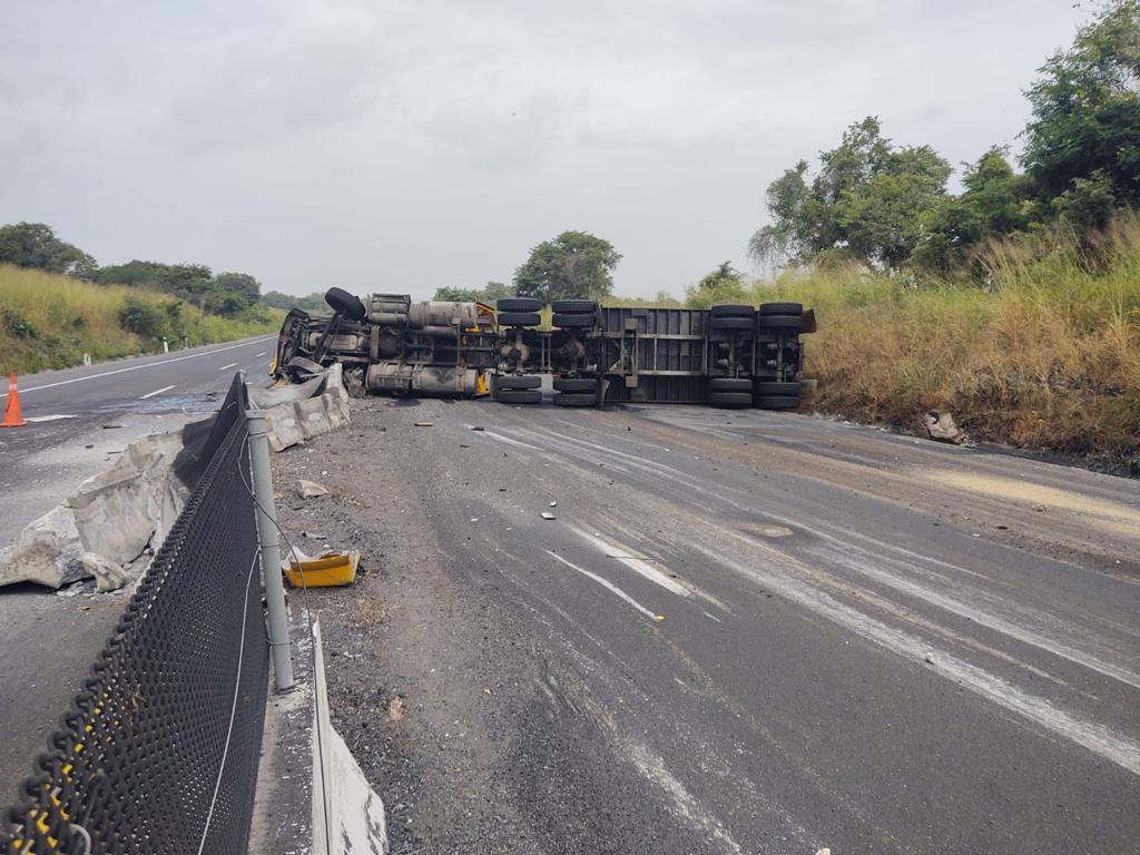 Cerrada circulación en tramo El Tamarindo-La Bocana por volcadura de tractocamión