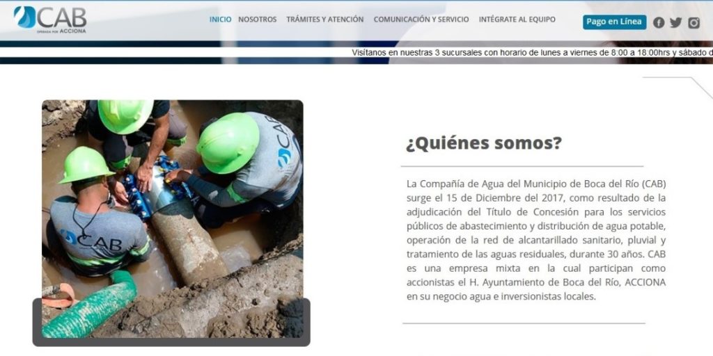 Y pese a la escasez de agua potable, servicio que brinda la compañía CAB, la cual tiene el título de concesión desde el 2017 y el ayuntamiento de Boca del Río participa como accionista, esta no perdona la impuntualidad de los pagos y al menor retraso corta el suministro de agua, el cual es un derecho humano, protegido por la Constitución Política.