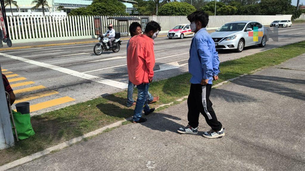 El cruce de la avenida Juan Pablo II y bulevar Ruiz Cortines, frente a la USBI de la Universidad Veracruzana (UV), se convirtió en su punto de trabajo. En un mes, los hermanos volverán a casa en Chiapas.
