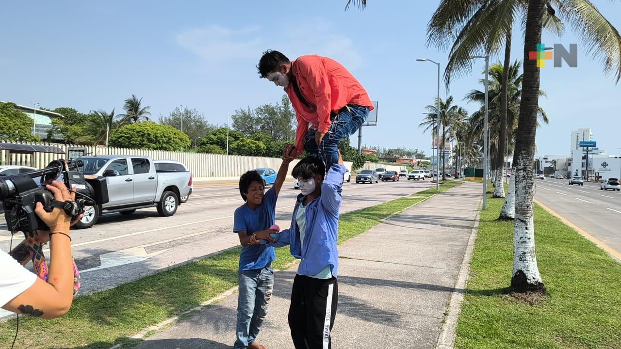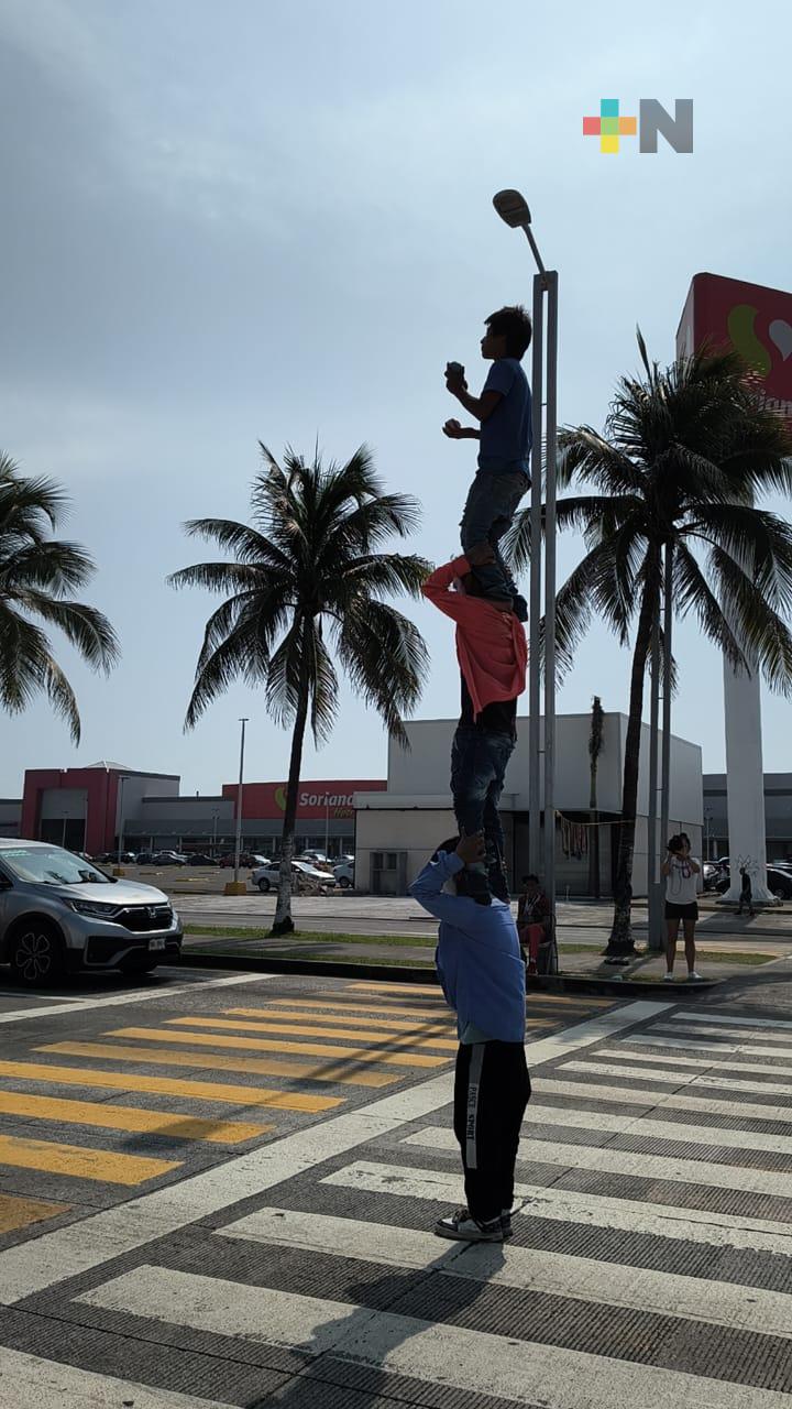 El cruce de la avenida Juan Pablo II y bulevar Ruiz Cortines, frente a la USBI de la Universidad Veracruzana (UV), se convirtió en su punto de trabajo. En un mes, los hermanos volverán a casa en Chiapas.