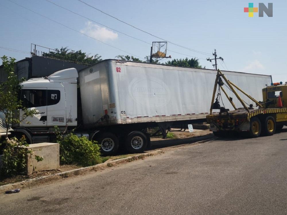 Choca tráiler contra negocio de comida en municipio de Sayula de Alemán