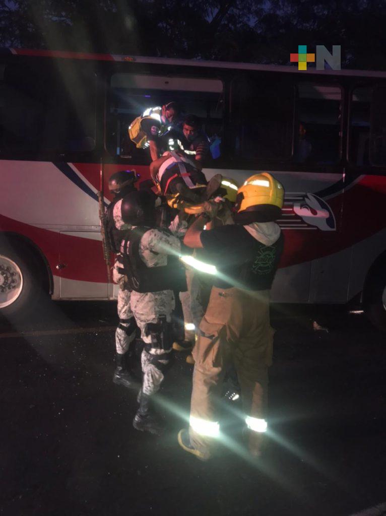 Un autobús de la línea Los Tuxtlas se impactó contra una camioneta Silverado placas XV-41974.