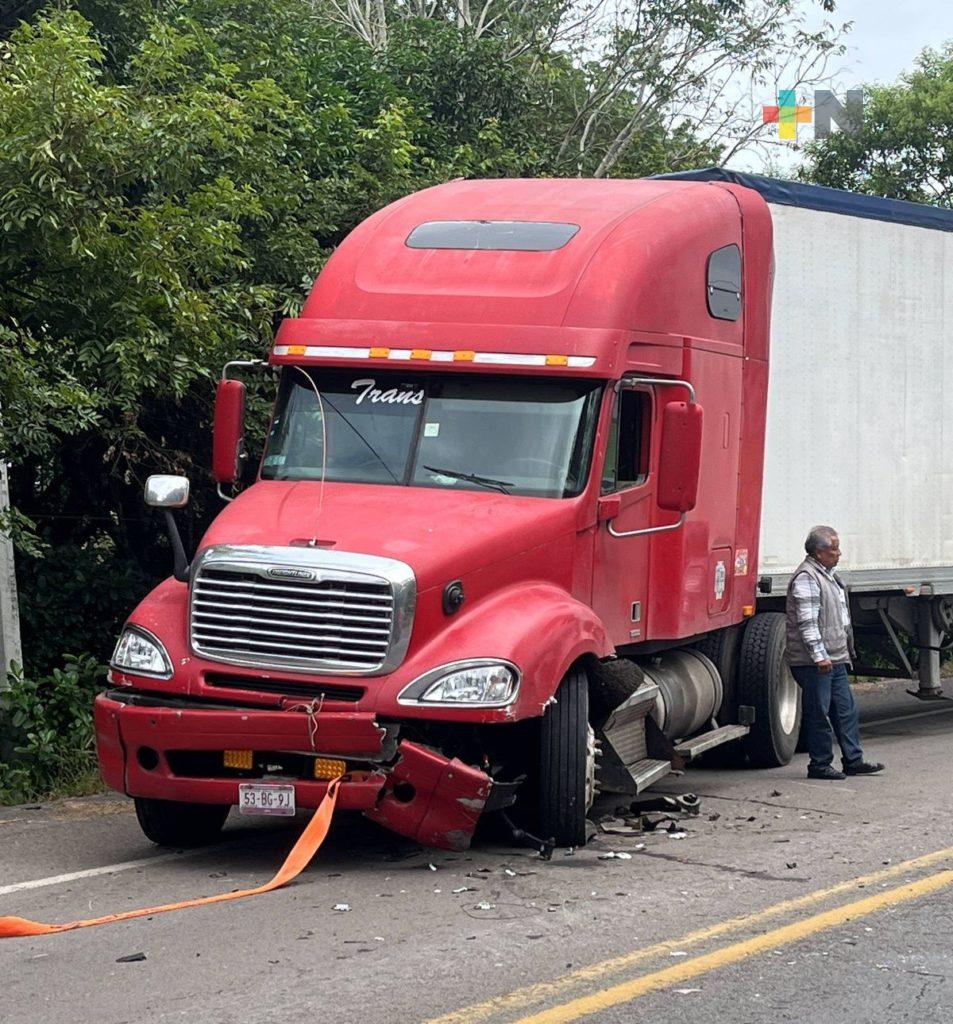 El percance se dio entre un automóvil Nissan March y un tractocamión, mismos que chocaron de costado, por intentar ganar el paso.
