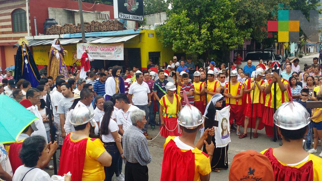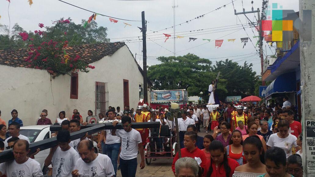 Actopan, Ver.- Cientos de católicos participan este viernes santo en el tradicional viacrucis que se lleva a cabo por las principales calles de Actopan, Veracruz.