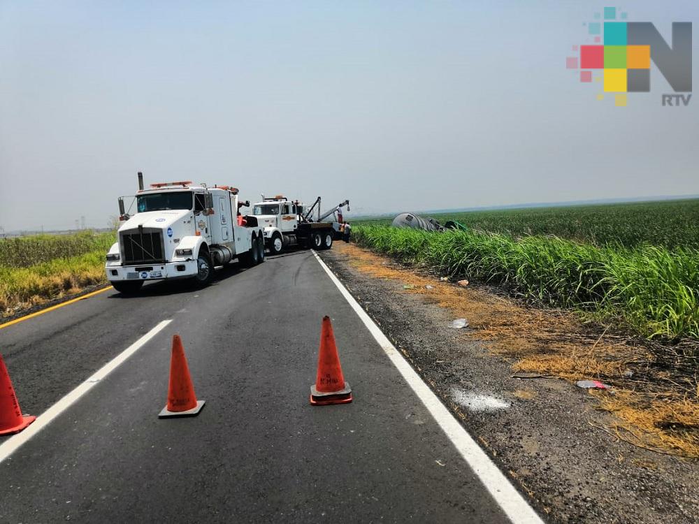 Cierran un carril de carretera Coatzacoalcos-Minatitlán; auto tanque se volcó en esa zona
