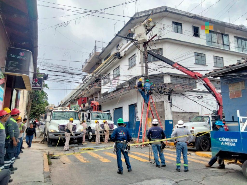 Xalapa, Ver.- Este viernes permaneció cerrada la calle Úrsulo Galván, en el centro de Xalapa, debido a la sustitución de un poste de la Comisión Federal de Electricidad (CFE) en la esquina de la calle Leona Vicario y Betancourt.