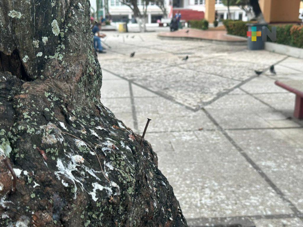 Ciudadanos piden limpiar suciedad de aves en parque de Coatzacoalcos