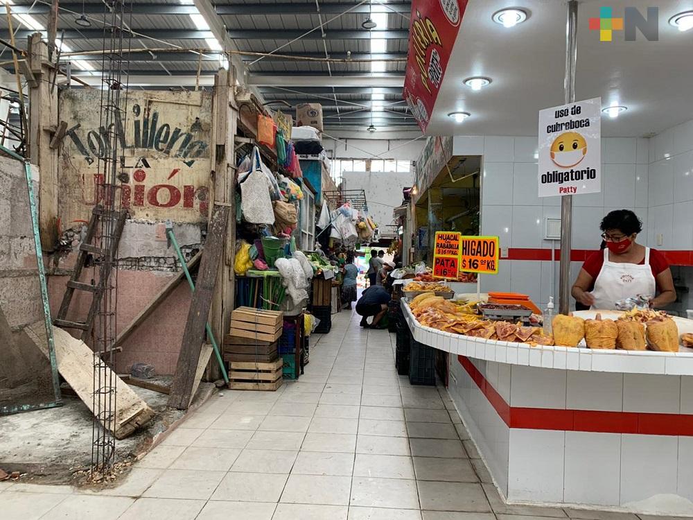 Clientes disminuyen medidas de sana distancia en mercado de Coatzacoalcos: locatarios
