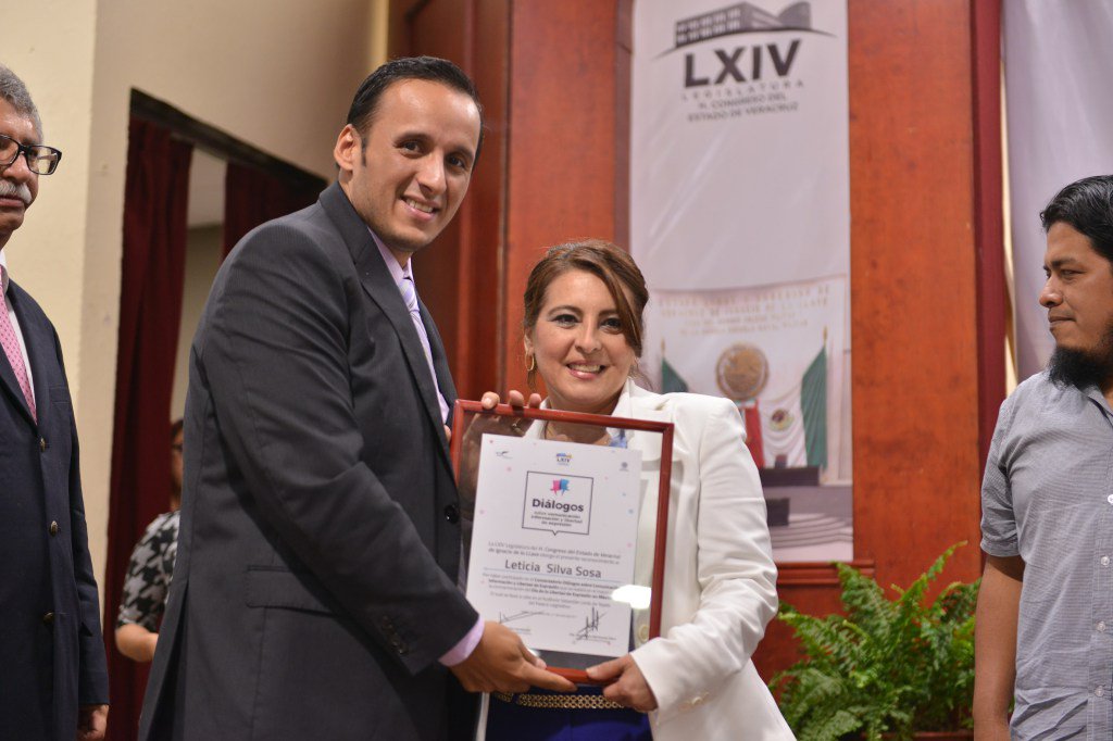 Uno lo recibió de manos del diputado Sergio Hernández Hernández, presidente de la Junta de Coordinación Política en el Congreso de Estado, donde varios comunicadores fueron reconocidos por su tarea informativa, entre ellos, nuestra compañera Lety Silva quien cubre la fuente legislativa para Radiotelevisión de Veracruz.