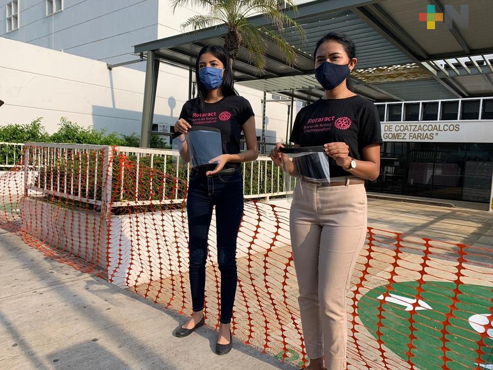 Coatzacoalcos, Ver.- Integrantes el Club Rotarac entregó caretas y cubrebocas de uso desechable para el personal médico del Hospital Regional de Coatzacoalcos “Dr. Valentín Gómez Farías”.