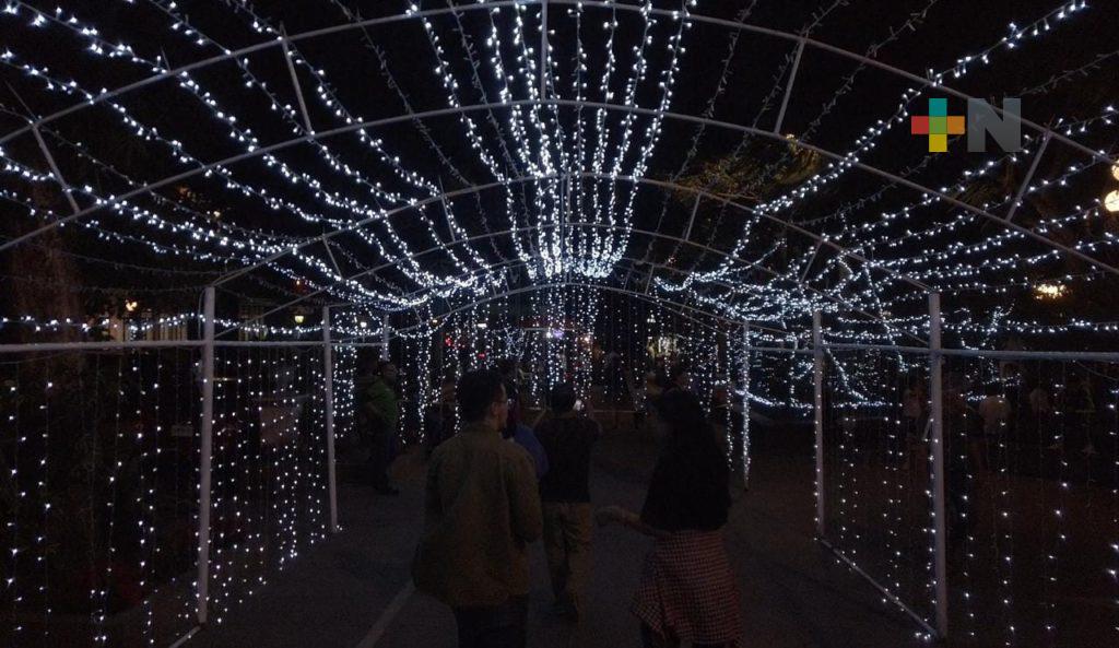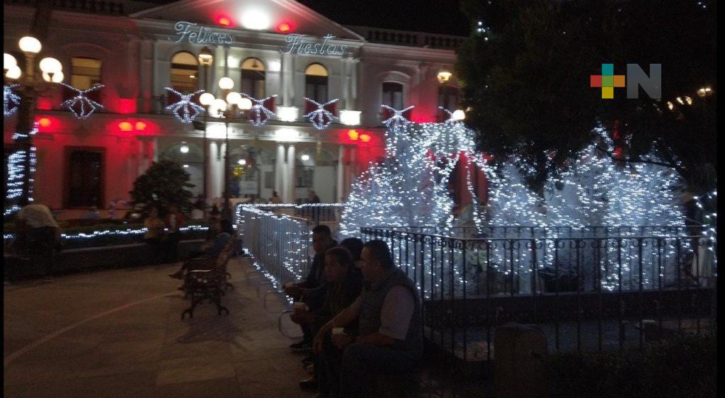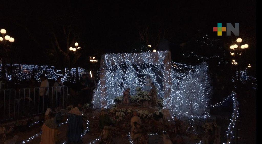 Coatepec, Ver.- Por la noche, el Pueblo Mágico de Coatepec se engalana con miles de luces en colores diferentes, adornos navideños, moños y un gran nacimiento.