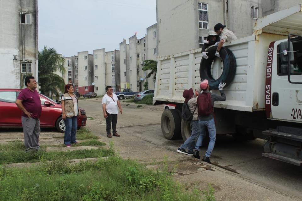 Tan sólo durante la última jornada realizada al poniente de la ciudad en las colonias Santa Martha, San Martín, Dunas y Ciudad Olmeca lado río recolectaron más de dos toneladas de cacharros y cerca de 300 llantas.