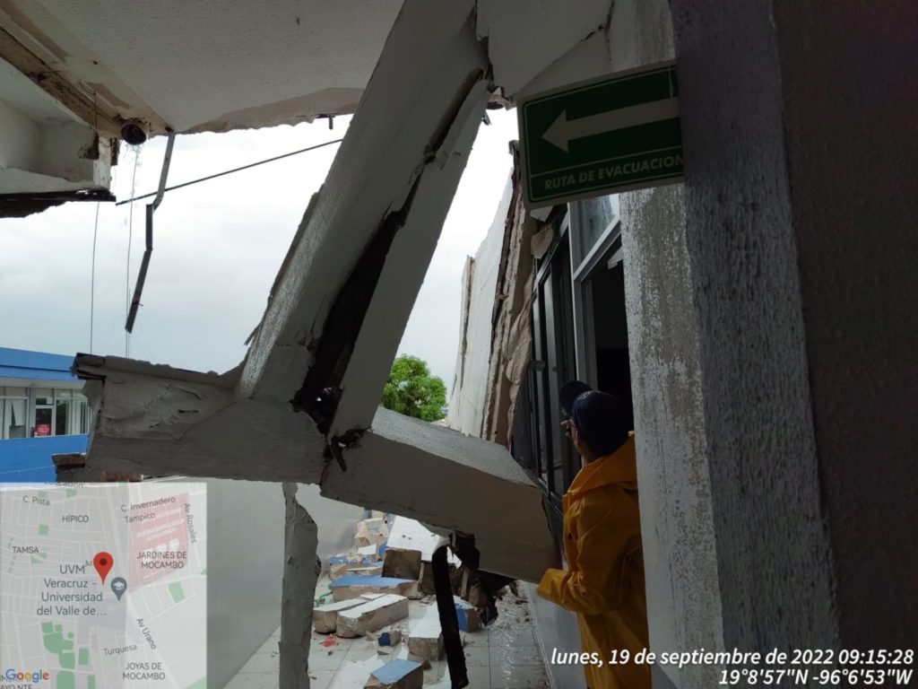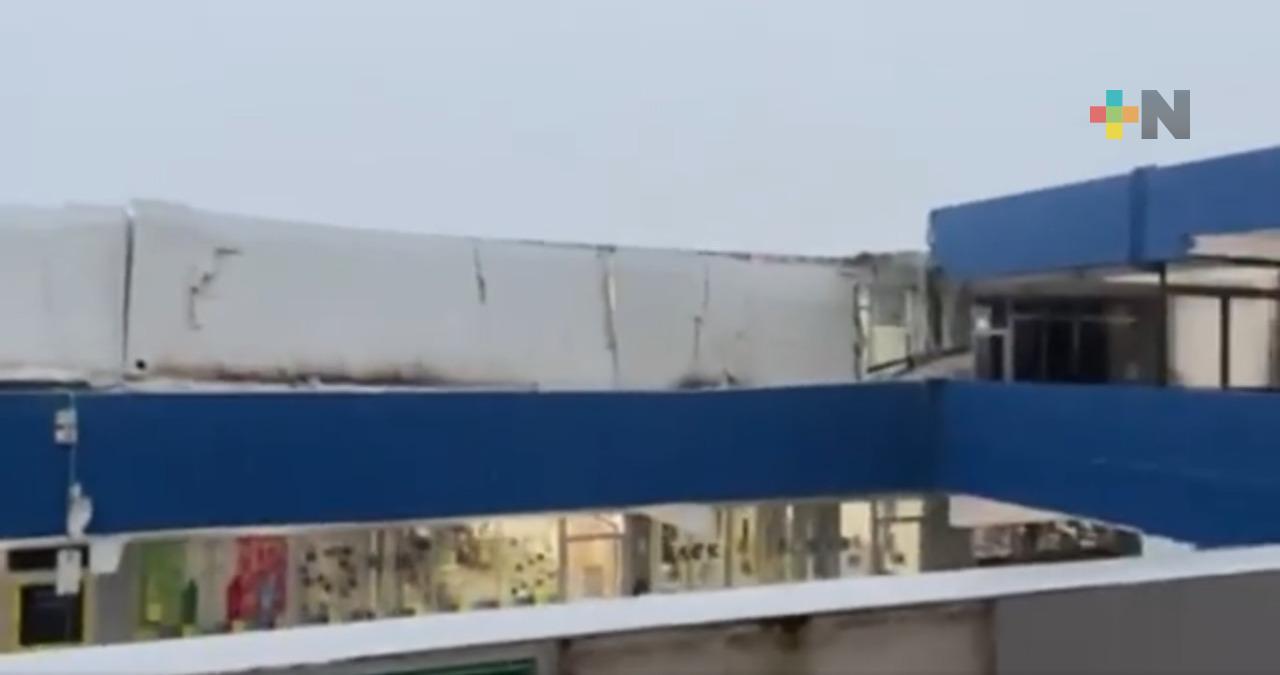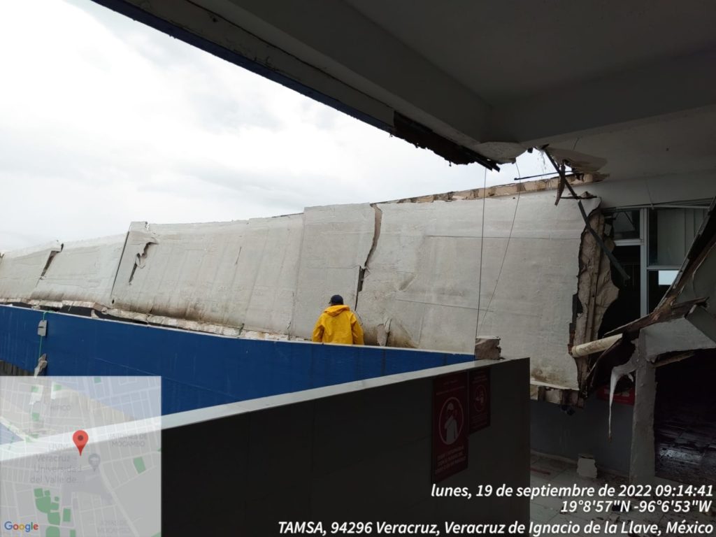Boca del Río, Ver.- Debido a las fuertes precipitaciones, durante la mañana de este lunes colapsó una parte del techo del tercer piso de colegio privado, en Boca del Río.