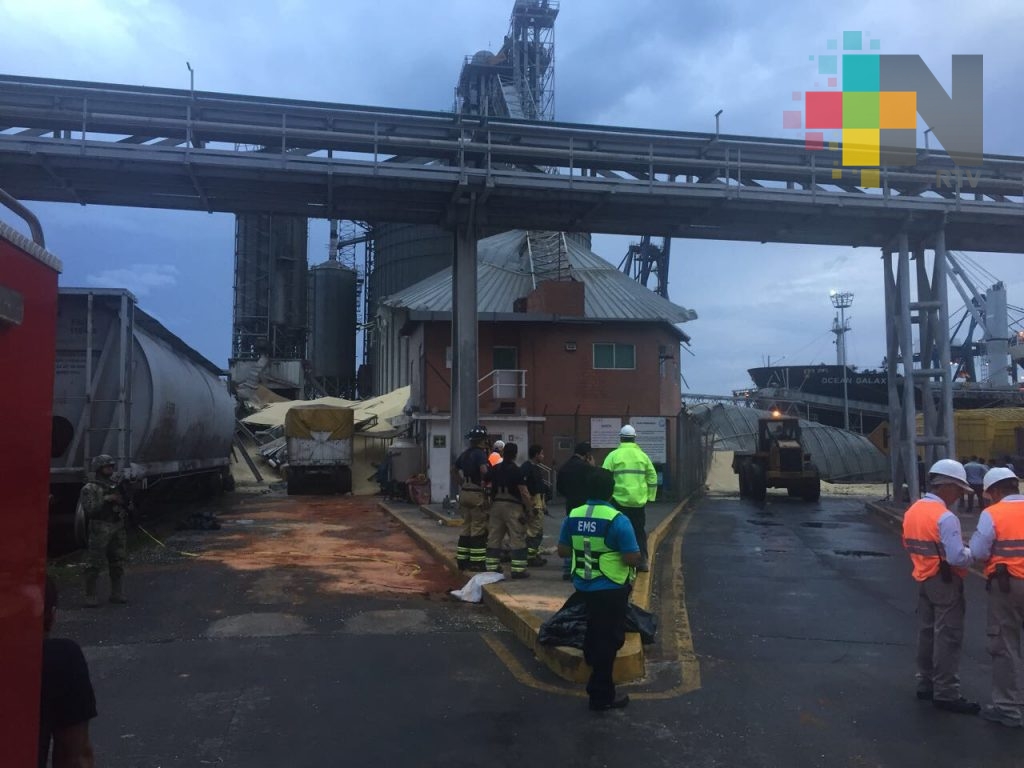 Veracruz, Ver.- En el interior del recinto portuario de Veracruz en la zona de descarga y carga de granos se desplomó un silo que almacenaba maíz.