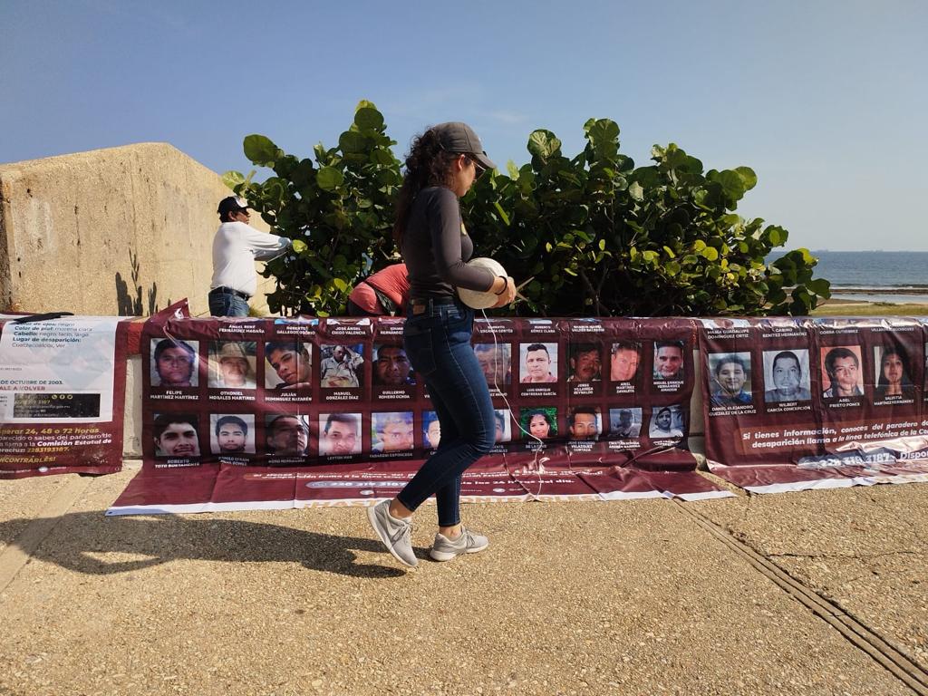 Coatzacoalcos, Ver.- Integrantes de los colectivos “Unidos por amor a ti”, “Madres en búsqueda Belén González”, “Buscando tus huellas”, recordaron a sus familiares desaparecidos a través de una cadena humana colocada sobre el malecón costero de Coatzacoalcos.