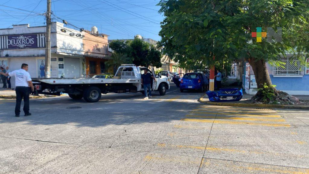 Colisión entre camioneta y automóvil en avenida Flores Magón de Veracruz puerto