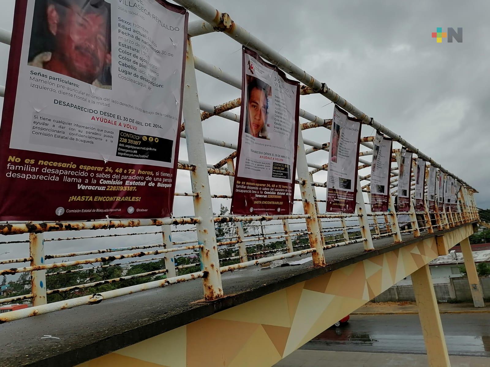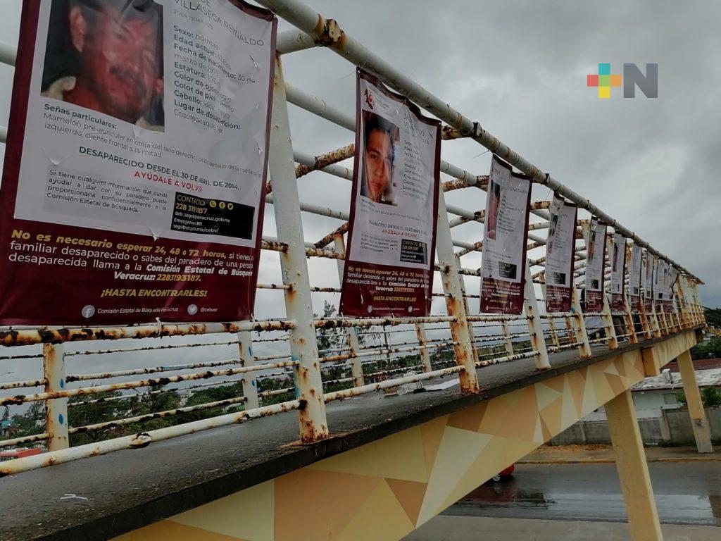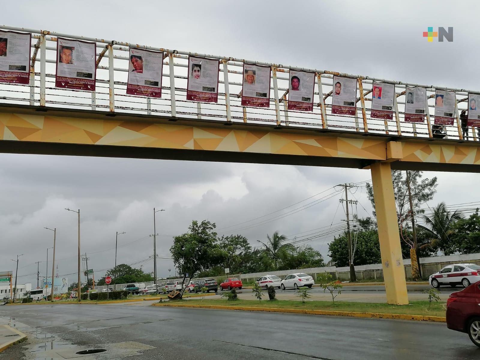 Colocan fichas de búsqueda en puente peatonal de Coatzacoalcos