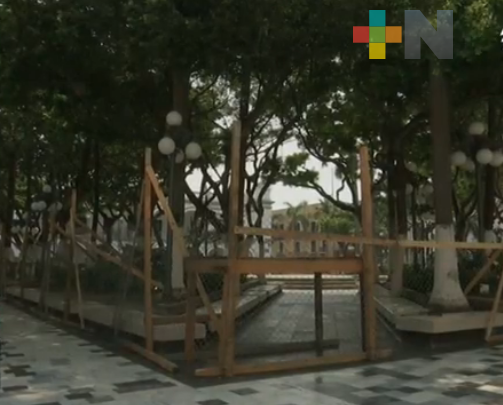 Colocan malla ciclónica alrededor en el zócalo de la ciudad de Veracruz