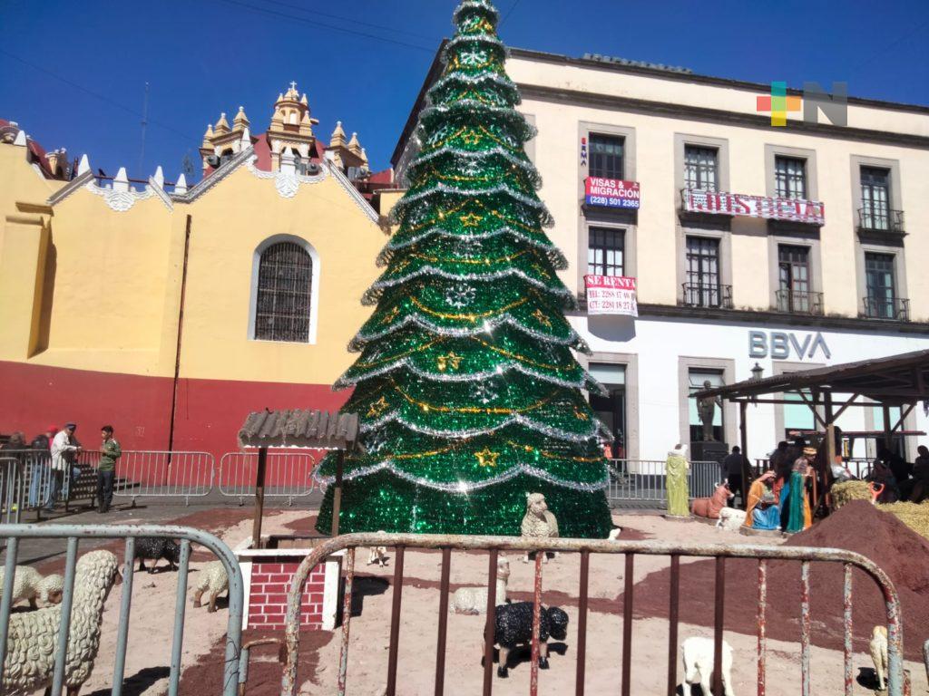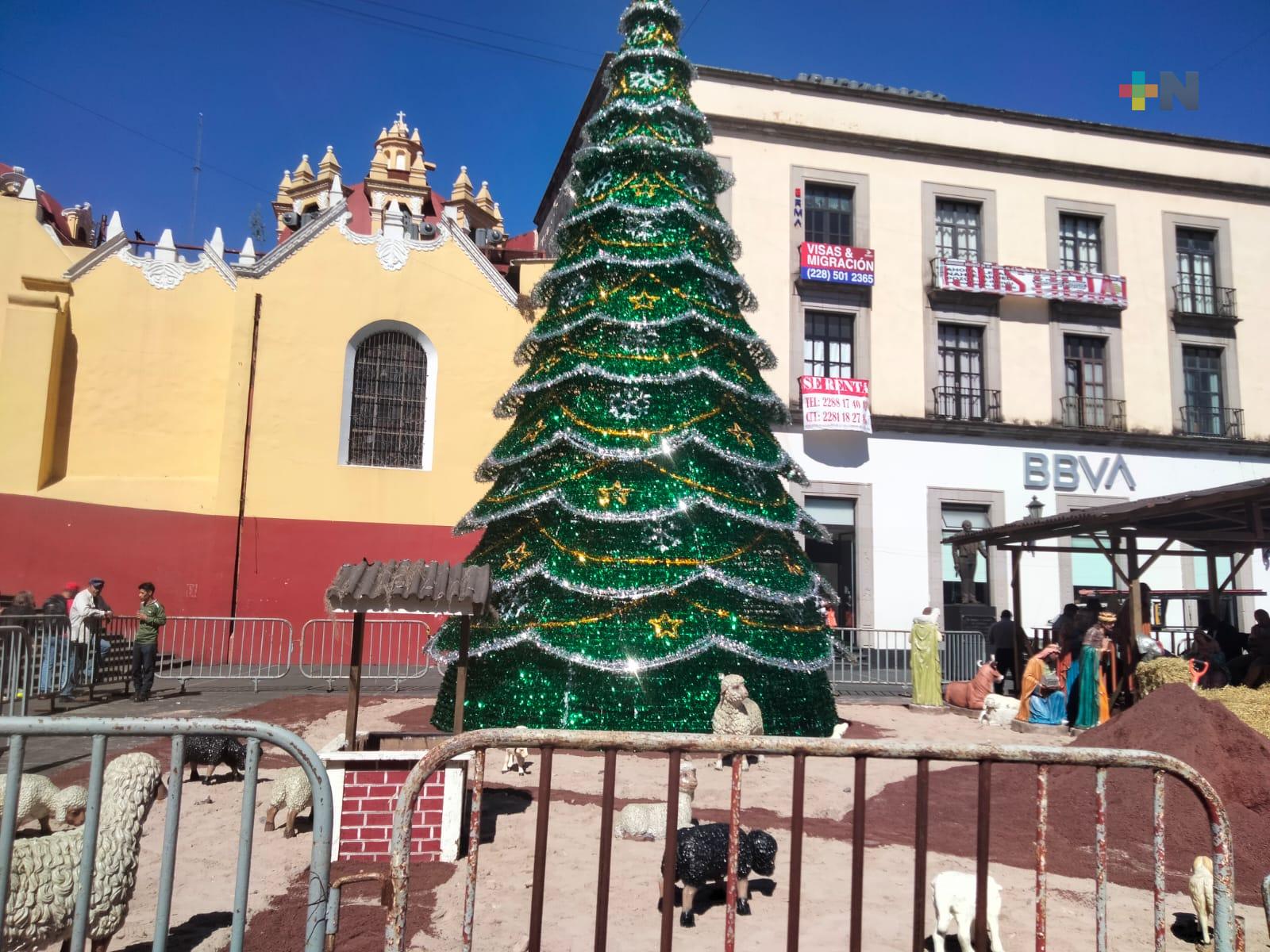 Colocan nacimiento y pino navideño en plaza Lerdo de Xalapa