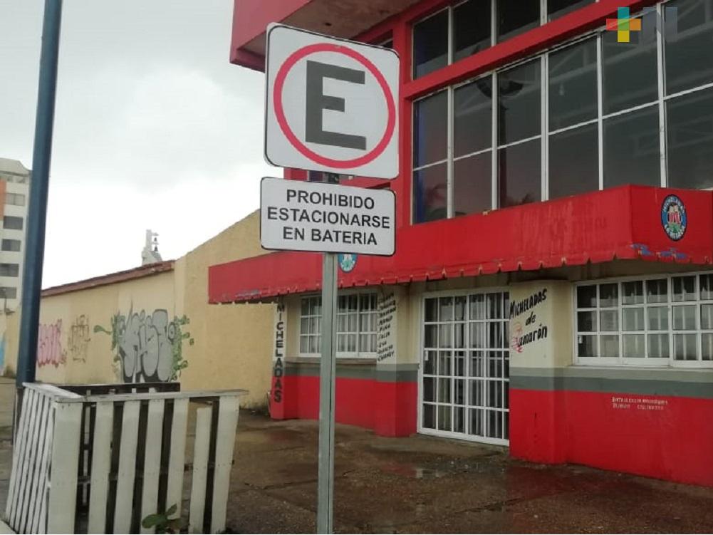 Coatzacoalcos, Ver.- La delegación de Tránsito colocó señaléticas en algunos puntos del malecón costero de Coatzacoalcos donde se indica que está prohibido estacionarse en batería o doble sentido, principalmente frente a los negocios que expenden bebidas alcohólicas.