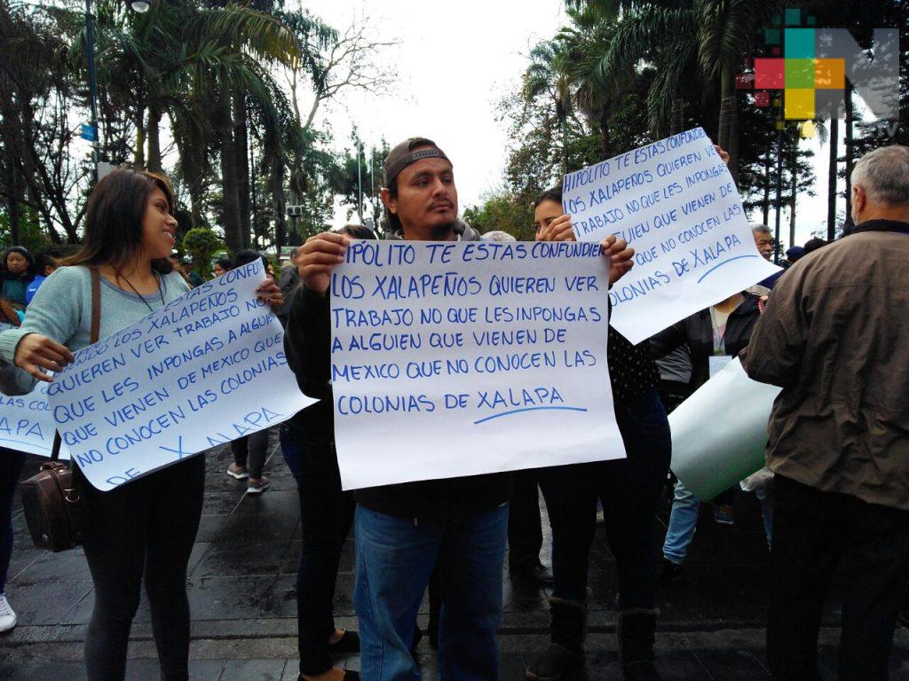 Encabezados por Juan Piedra Moctezuma, dirigente de la Organización Pueblos Unidos por Veracruz, exigieron trabajo y que se retire a quienes están administrando los recursos municipales y que no conocen ni las colonias de Xalapa.