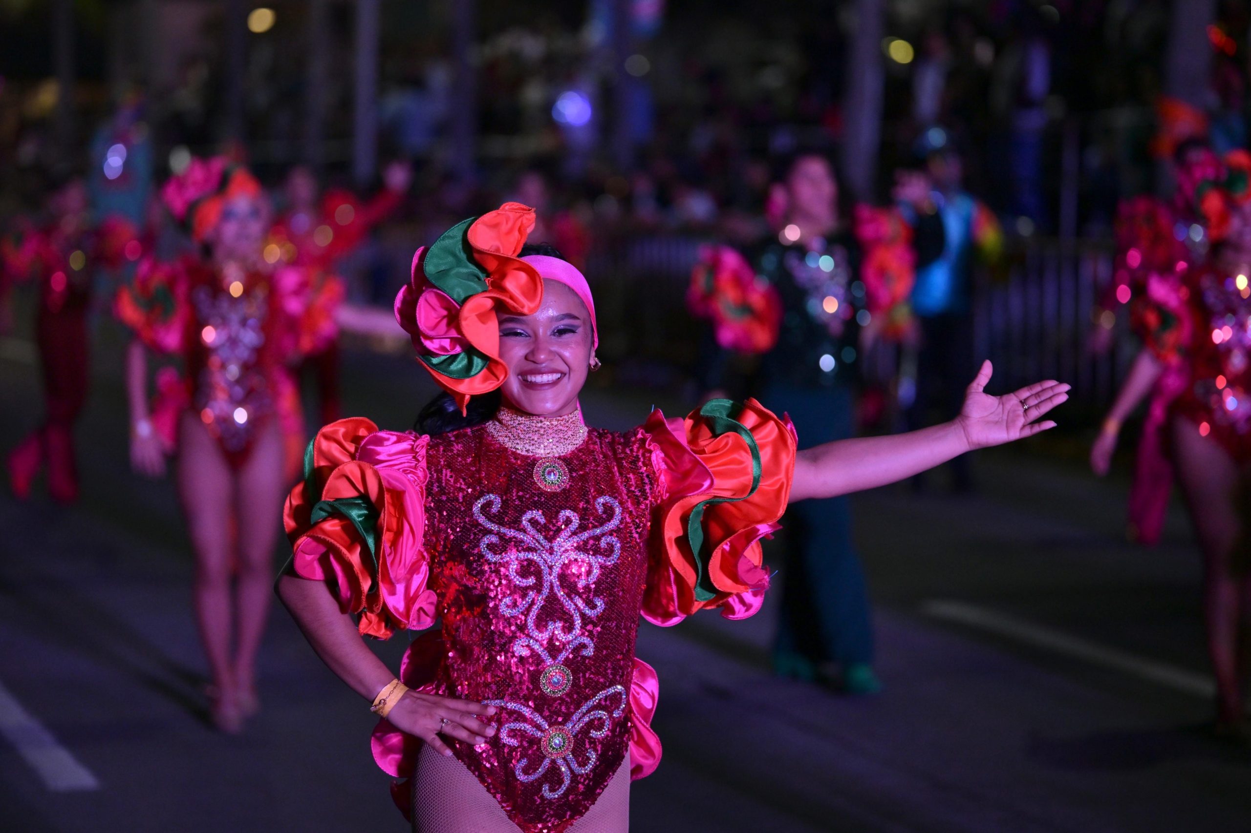 En esta edición participaron delegaciones de Cuba y Colombia, cuya presencia fortaleció el intercambio cultural y aportó un vibrante espíritu caribeño al recorrido. En total, el contingente estuvo integrado por 55 agrupaciones, además de delegaciones internacionales y tripulaciones de carros alegóricos, en un ambiente familiar y seguro.