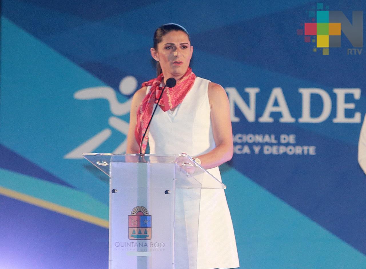 El acto protocolario fue encabezado por la directora general de la Comisión Nacional de Cultura Física y Deporte (CONADE), Ana Gabriela Guevara, quien estuvo acompañada por el gobernador del estado de Quintana Roo, Carlos Manuel Joaquín González y del director de la Comisión para la Juventud y Deporte, Jesús Antonio López Pinzón.