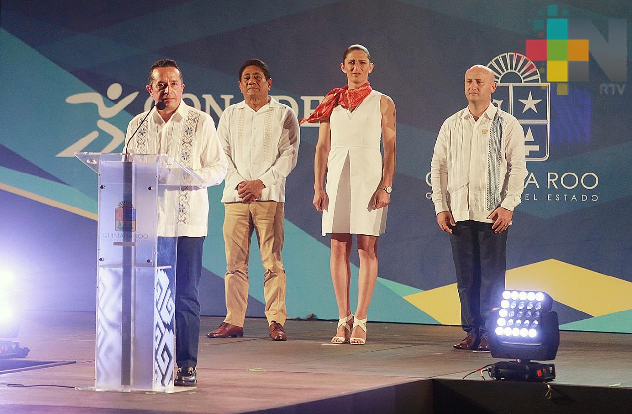 La declaratoria inaugural corrió a cargo del gobernador de Quintana Roo, Carlos Manuel Joaquín González, quien se congratuló por recibir, por tercera ocasión, este magno evento, que, sin duda, dijo, estará lleno de éxitos deportivos.