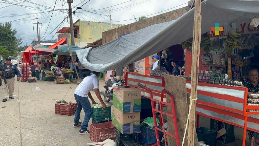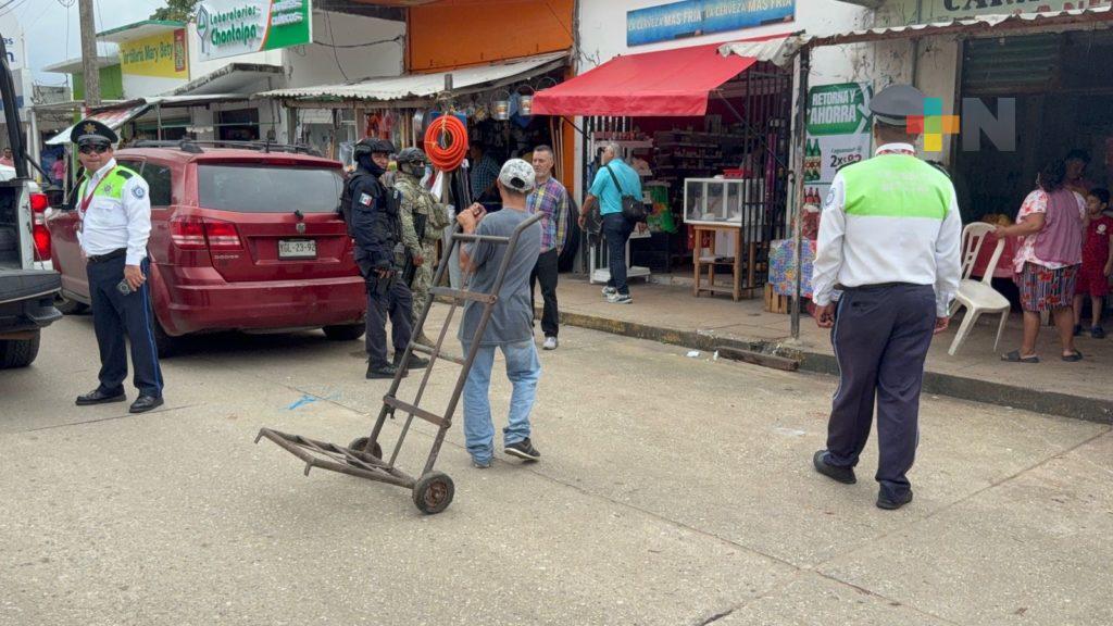 Coatzacoalcos, Ver.- Autoridades de Coatzacoalcos acompañados de fuerzas federales y estatales aplicaron un operativo en el centro de Villa Allende, a fin de liberar banquetas y partes de la calle que son ocupadas por comerciantes.