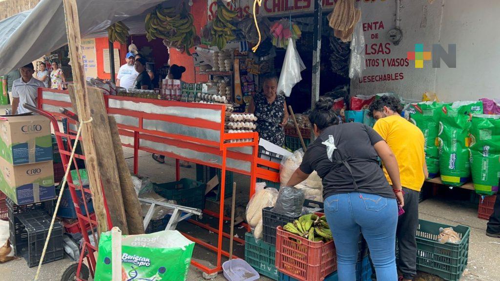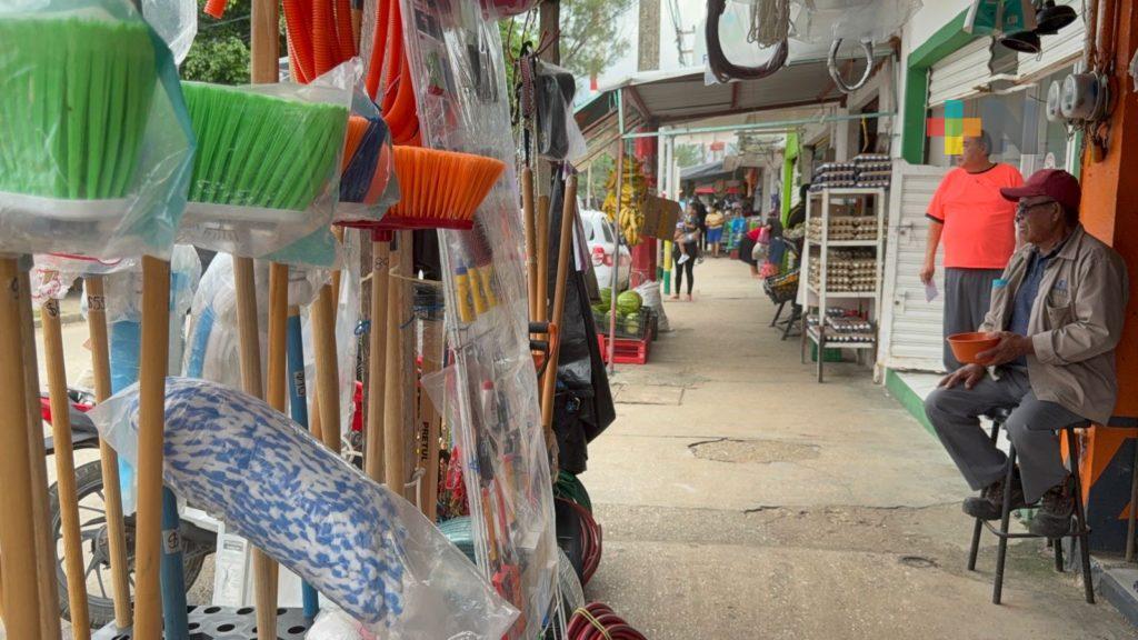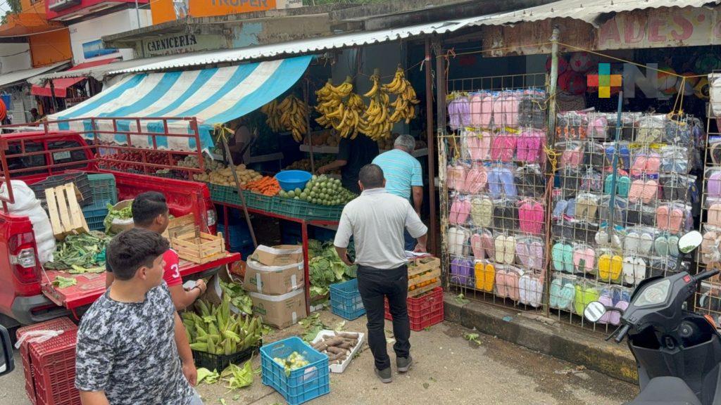 Y es que sobre la calle Zamora y Lerdo de la localidad perteneciente a Coatzacoalcos, las cajas de verduras, lonas y puestos de madera o metal, no permiten que ningún vehículo se estacione.