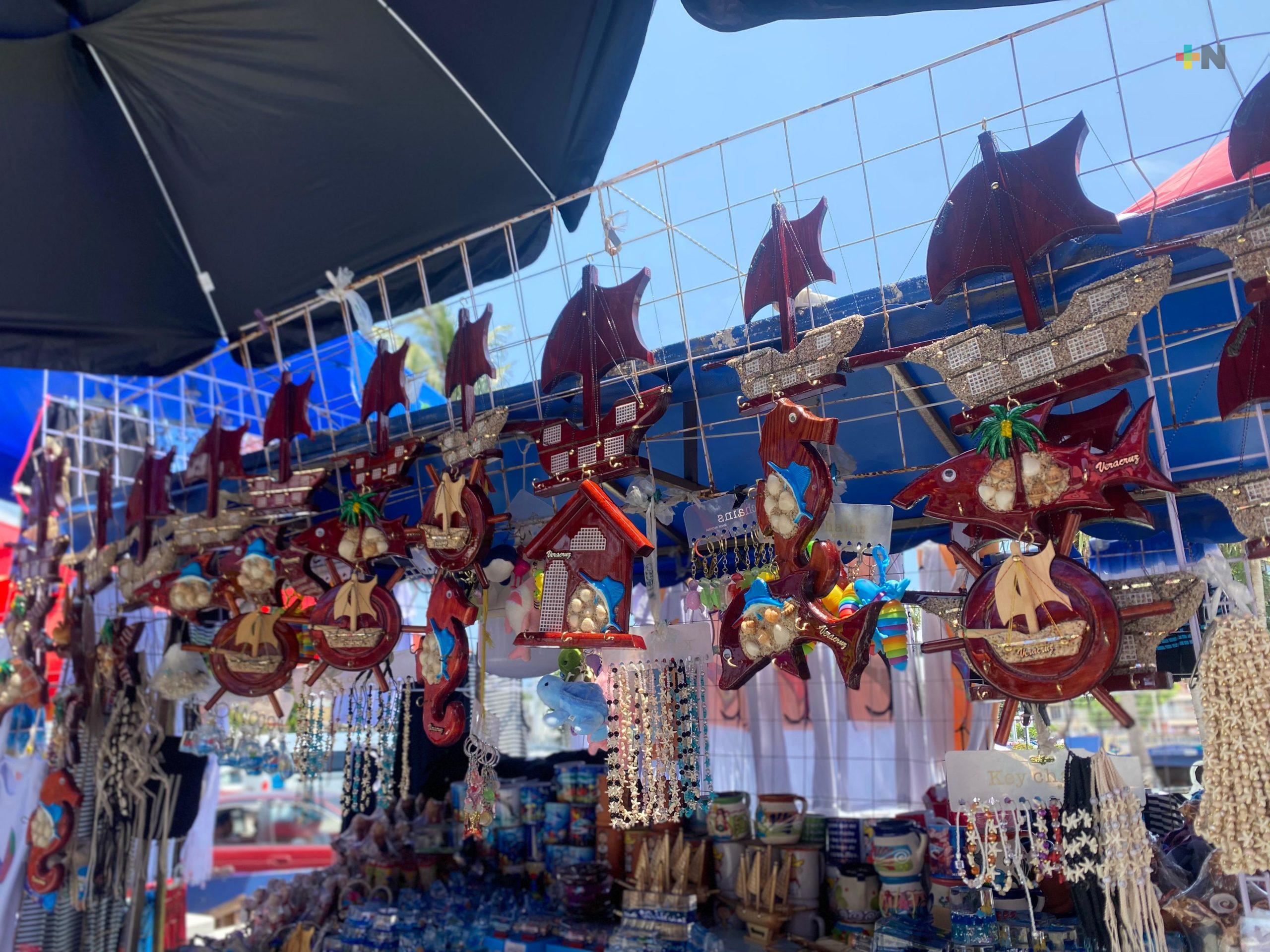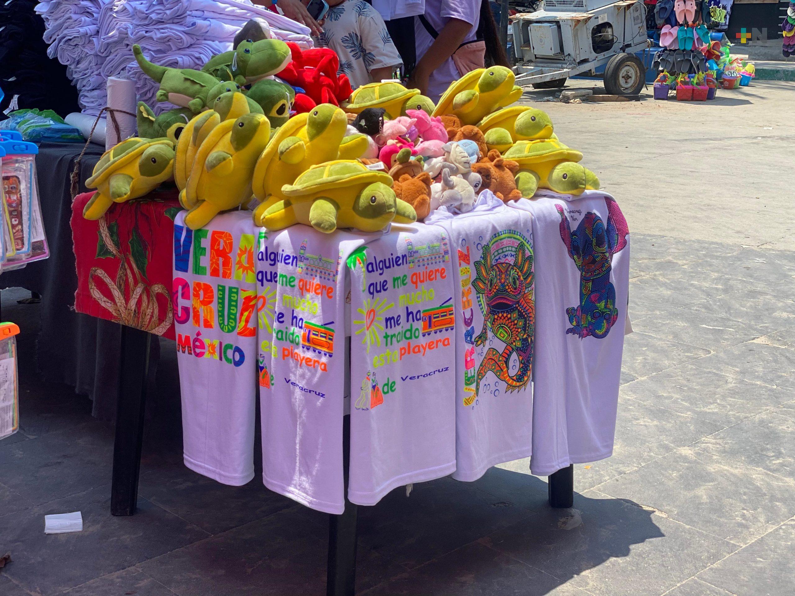 En el lugar se ofrecen artesanías, playeras, raspados, glorias y frutas naturales. Vendedores invitan a turistas a disfrutar del puerto de Veracruz y sus playas, manteniendo la esperanza de recibir visitantes hasta el cierre de la temporada.