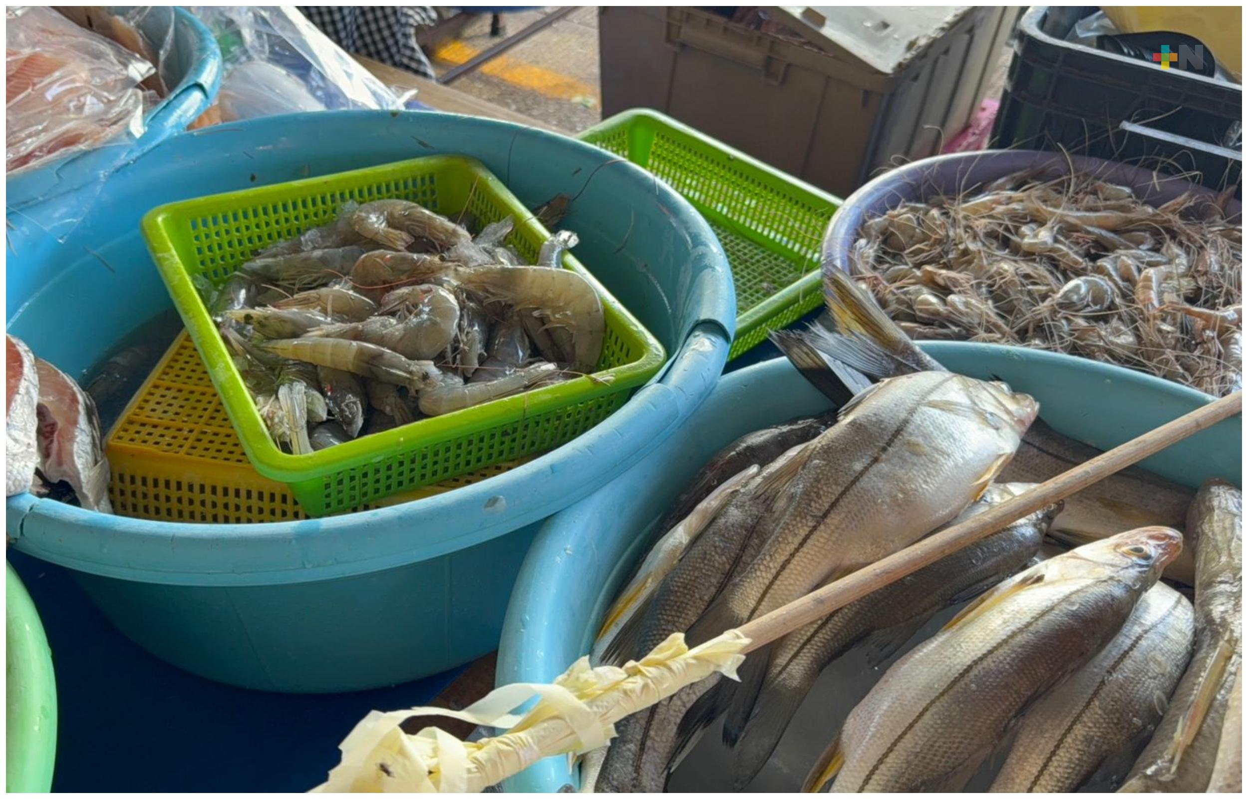 Herminda, es una de las comerciantes, explicó que productos como camarón, mojarra y distintas especies de pescado continúan llegando de manera regular, incluso algunos son criados en granjas o espacios controlados, lo que garantiza su frescura.