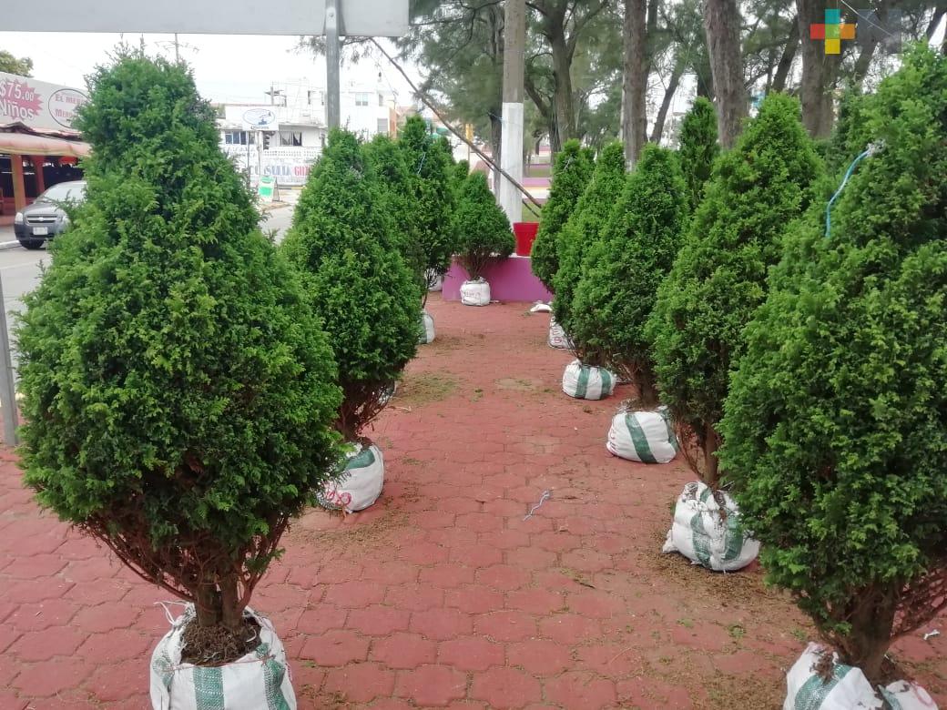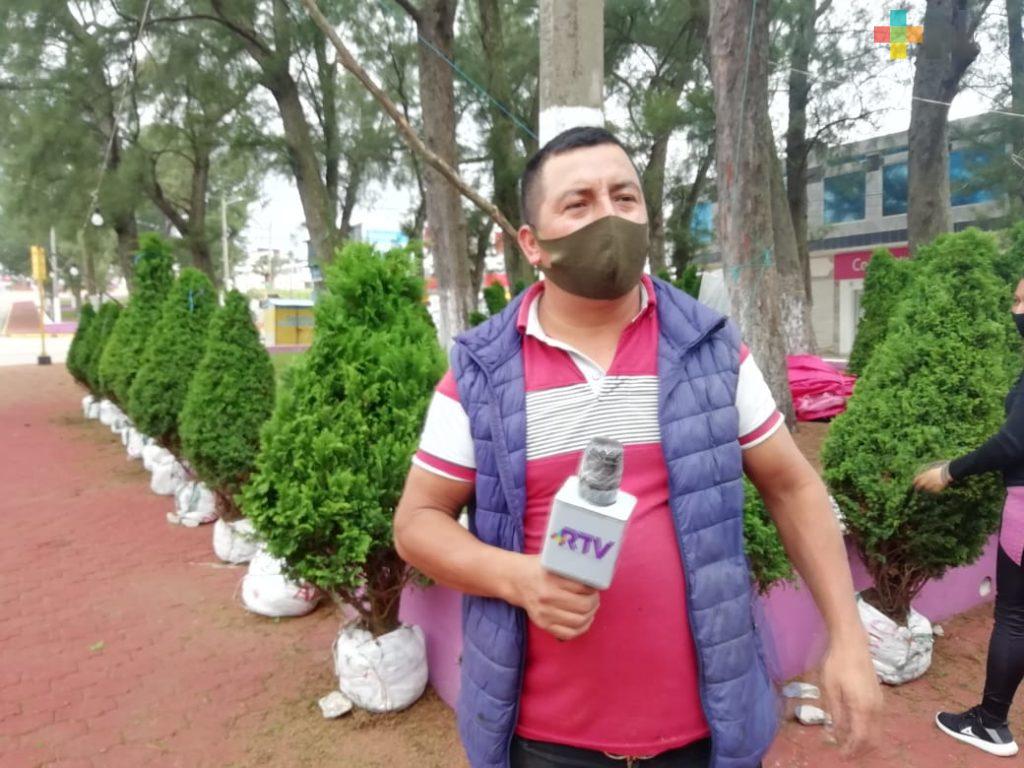 Comerciantes de pinos navideños esperan buenas ventas en Coatzacoalcos
